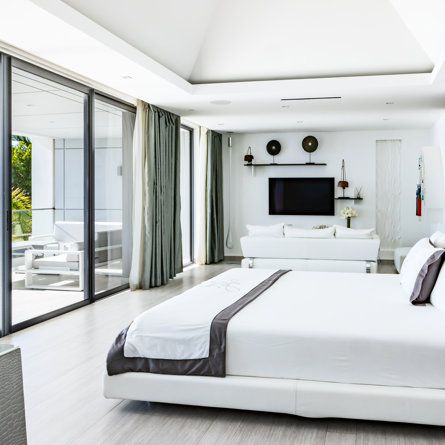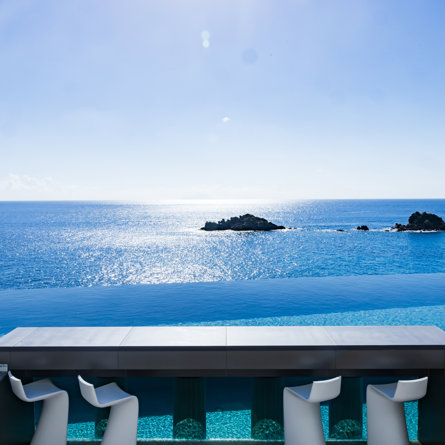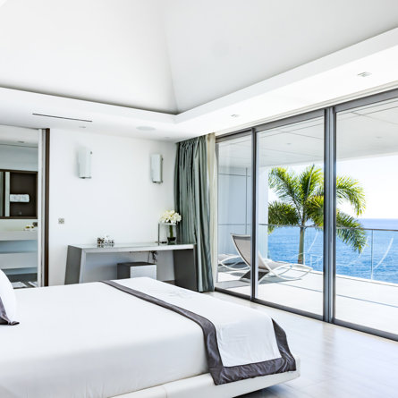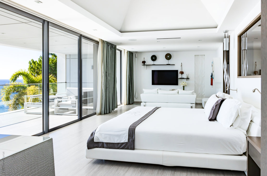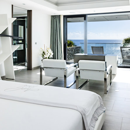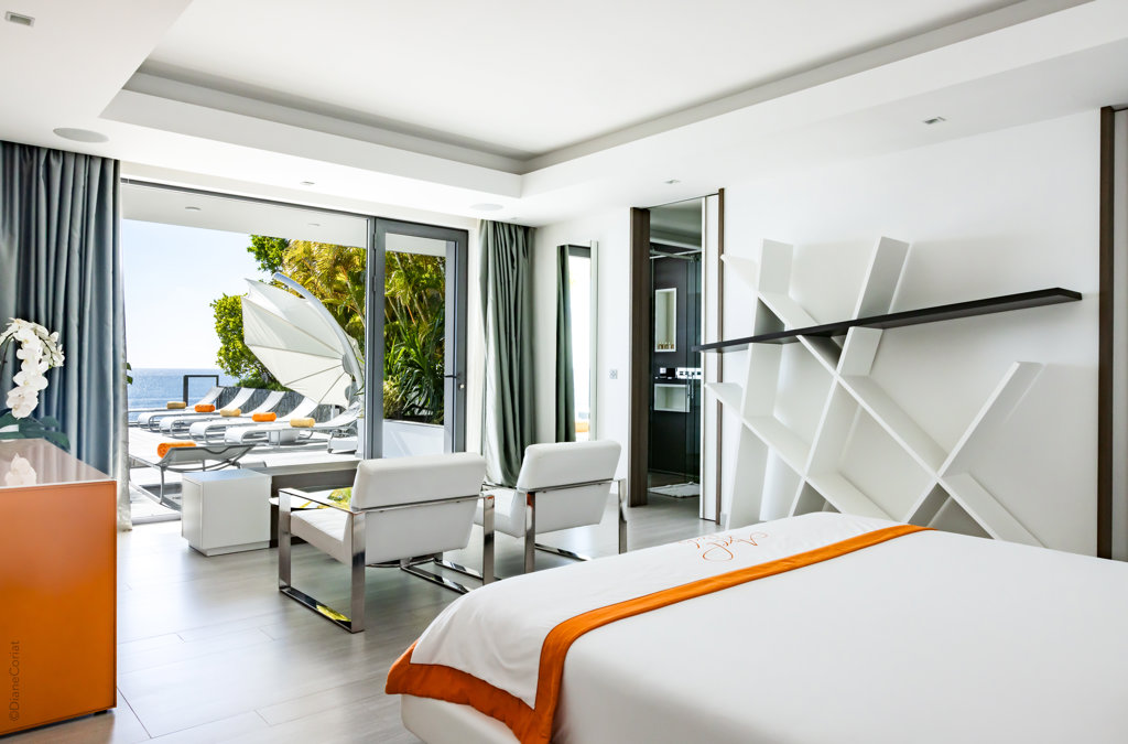 Vue mer & piscine, Terrasse, Air conditionné, Lit king size, Dressing, Bureau, TV, Rideaux occultants, Coffre-fort.