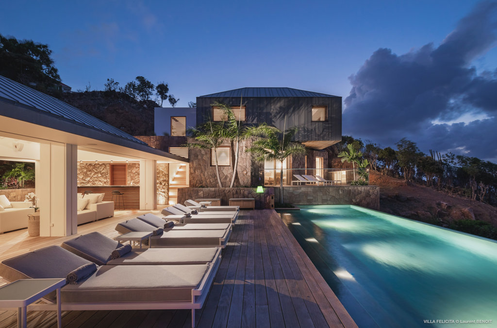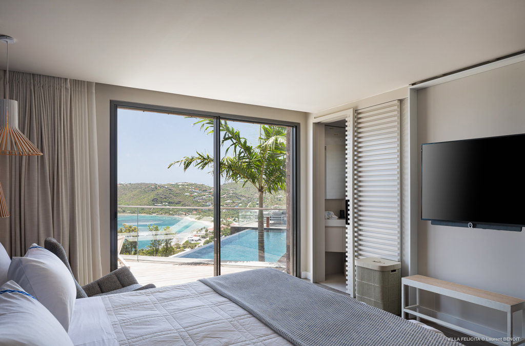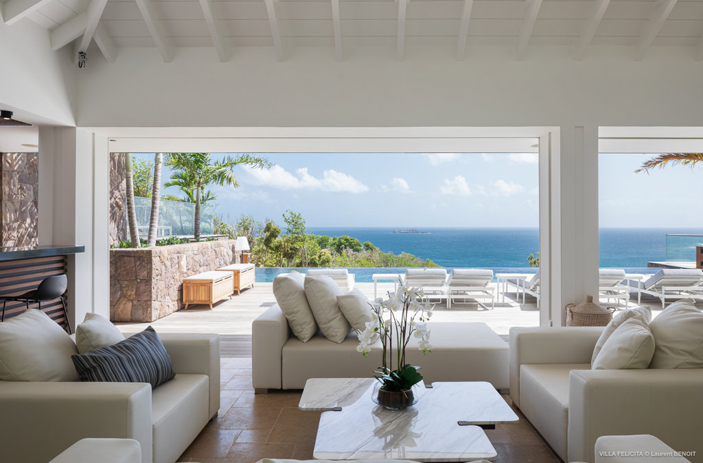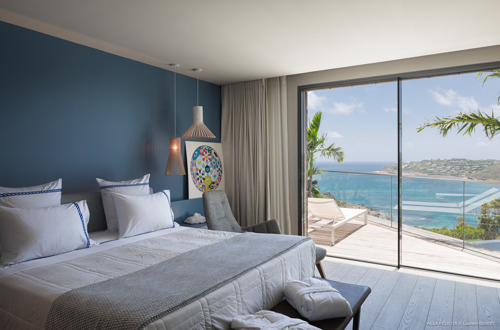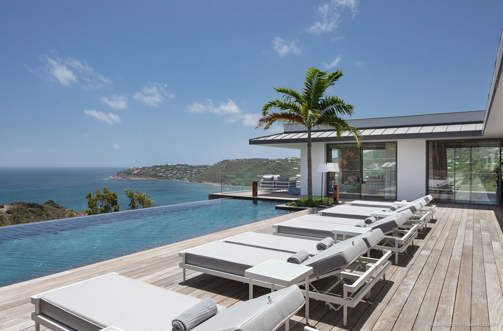 Fidèle à son nom, la villa Felicita située à Lorient et proche de l’Eden Rock – St Barths, reflète l’allégresse que l’on ressent lors de vacances au soleil et se distingue par des prestations d’exception : cinq grandes chambres et deux plus petites réparties sur trois niveaux, une salle de sport, une salle de télévision, une cuisine de Chef, des espaces extérieurs à la fois abrités du vent et ensoleillés sans oublier une sublime vue sur la baie, sans aucun vis-à-vis.