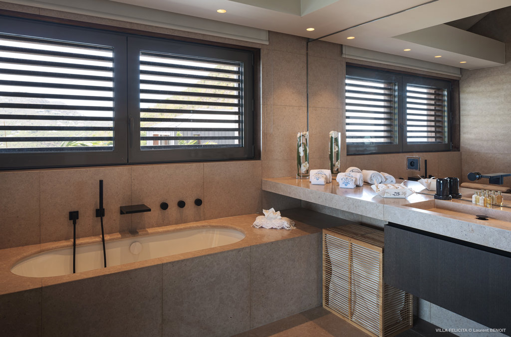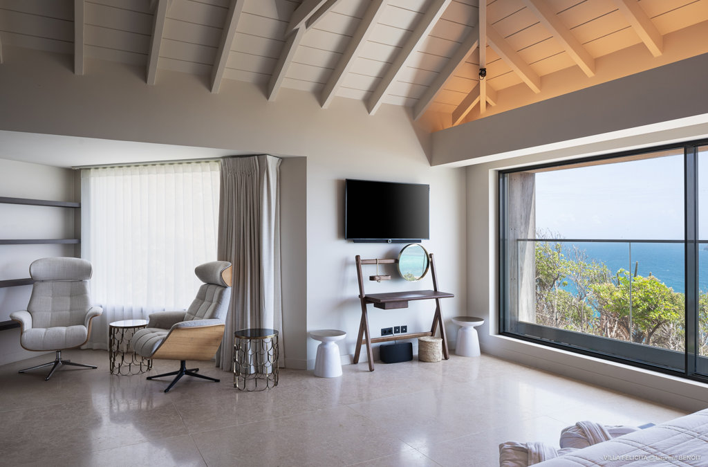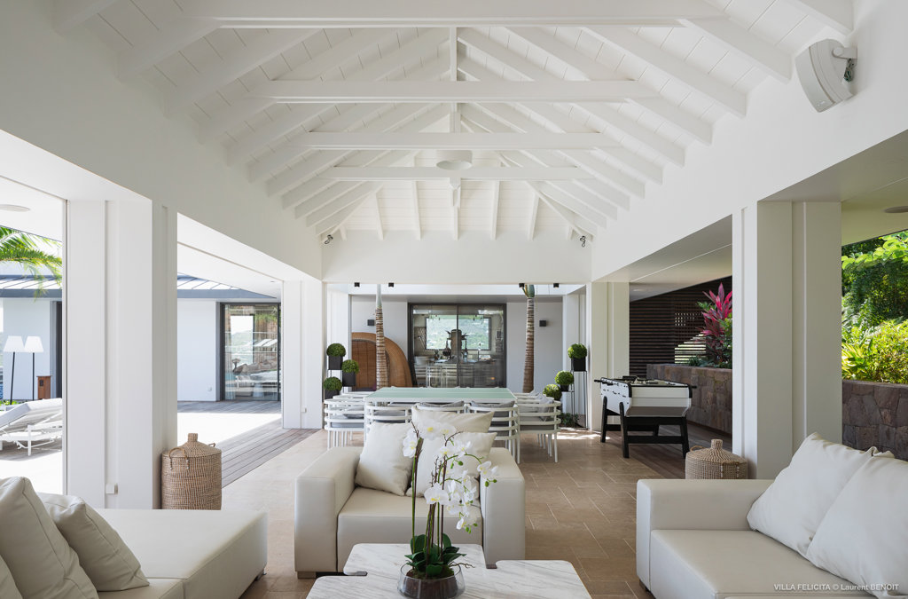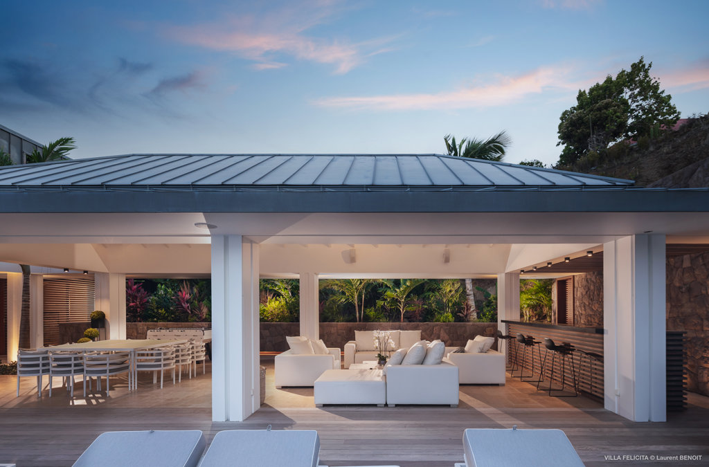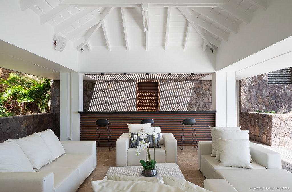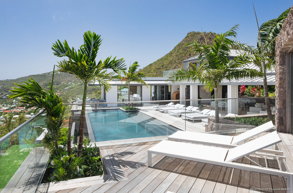 Fidèle à son nom, la villa Felicita située à Lorient et proche de l’Eden Rock – St Barths, reflète l’allégresse que l’on ressent lors de vacances au soleil et se distingue par des prestations d’exception : cinq grandes chambres et deux plus petites réparties sur trois niveaux, une salle de sport, une salle de télévision, une cuisine de Chef, des espaces extérieurs à la fois abrités du vent et ensoleillés sans oublier une sublime vue sur la baie, sans aucun vis-à-vis.