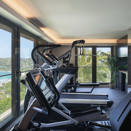 Air conditionné, TV, Tapis de course, Vélo elliptique, Vélo d'intérieur, Banc de musculation, Poids, Tapis de Yoga.