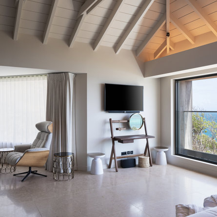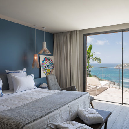 Vue mer, Terrasse privée, Air conditionné, Lit king size, Dressing, Bureau, Smart TV, Dish, Apple TV, Rideaux occultants, Coffre-fort.