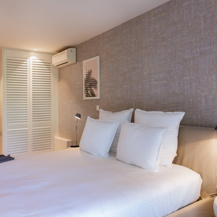 Vue mer, Terrasse, Air conditionné, Ventilateur, Lit king size, Armoire, Smart TV, Apple TV, Coffre-fort.