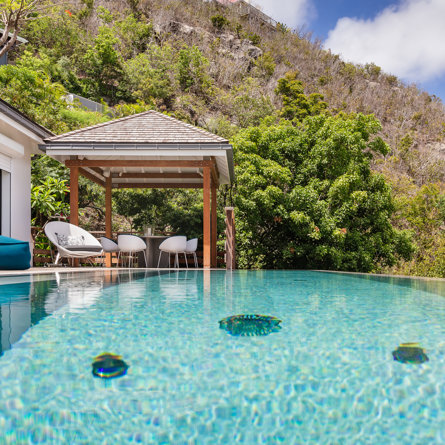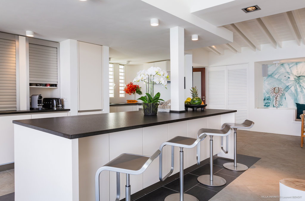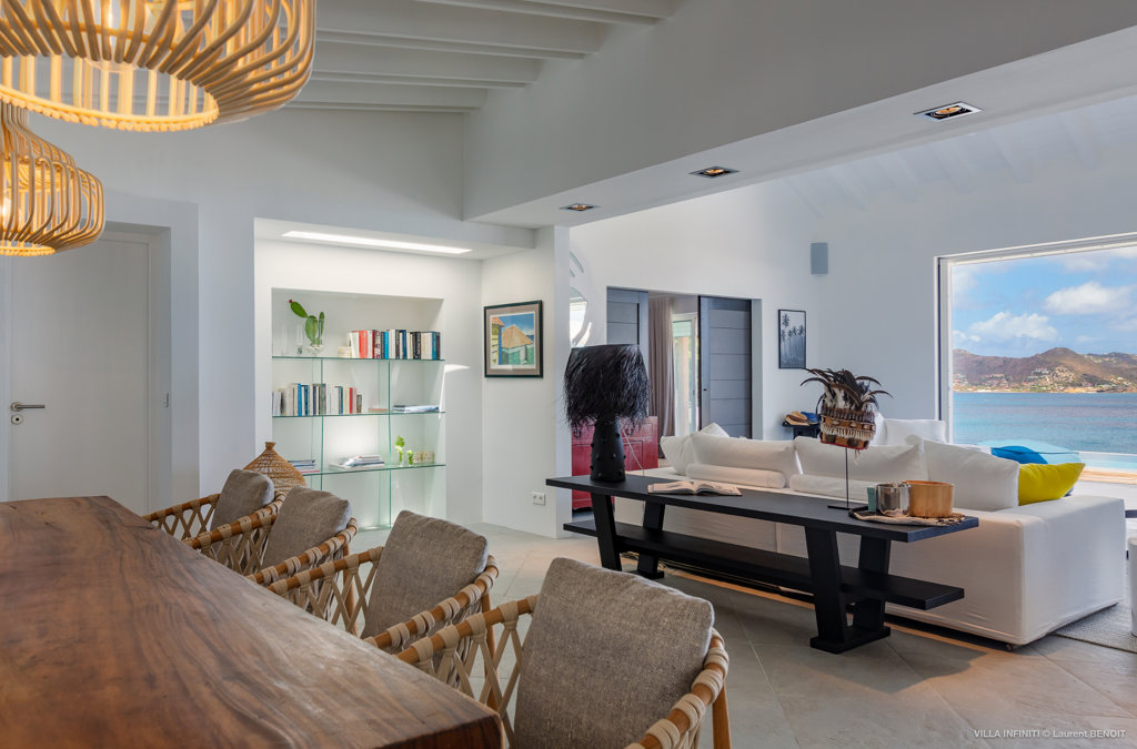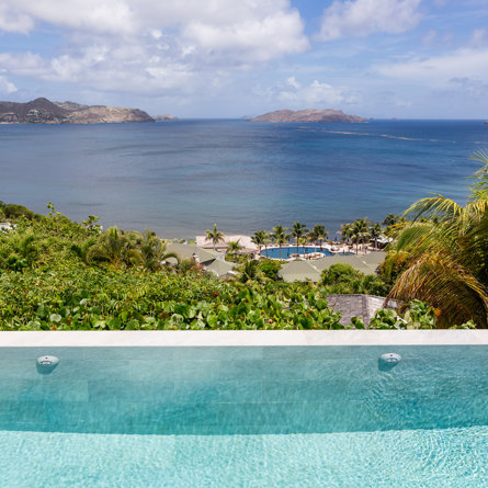 Perchée sur les hauteurs surplombant les baies de Saint-Jean et de Lorient, la Villa Infiniti vous offre une vue imprenable et un accès privilégié à une plage privée des plus élégantes. Cette résidence contemporaine, de plain-pied et entièrement climatisée, dispose d’une cuisine parfaitement équipée et de deux suites spacieuses — l’une avec lit king size, l’autre avec lit queen size — chacune dotée d'une salle de bain avec douche à l’italienne. À l’extérieur, profitez d’une baignade sous les étoiles dans la piscine chauffée ou d’un dîner en terrasse face à l’horizon azuré.