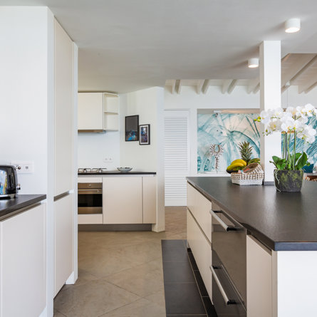 La Villa Infiniti vous offre une vue imprenable. Cette résidence contemporaine, de plain-pied et entièrement climatisée, dispose d’une cuisine parfaitement équipée et de deux suites spacieuses — l’une avec lit king size, l’autre avec lit queen size — chacune dotée d'une salle de bain avec douche à l’italienne. À l’extérieur, profitez d’une baignade sous les étoiles dans la piscine chauffée ou d’un dîner en terrasse face à l’horizon azuré.
