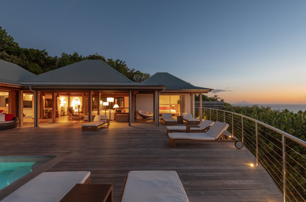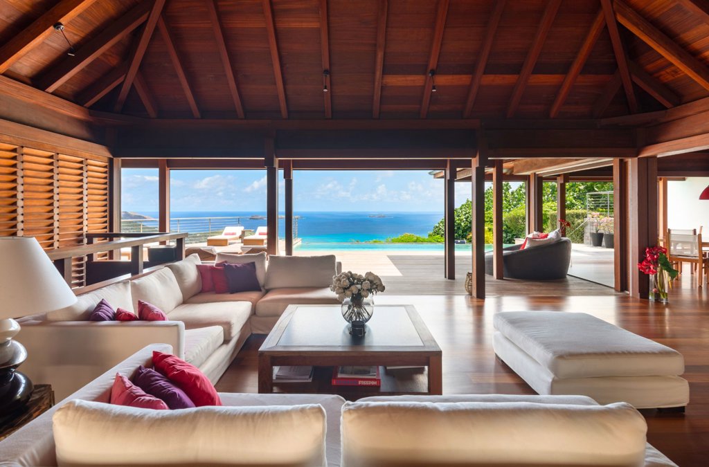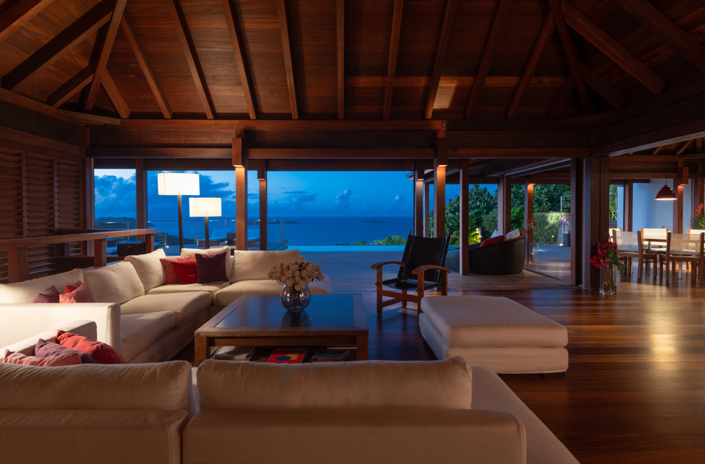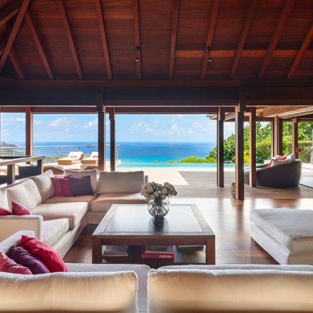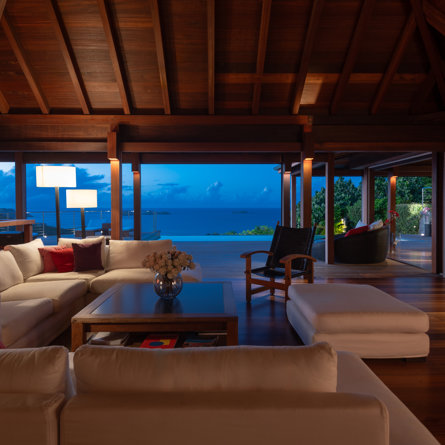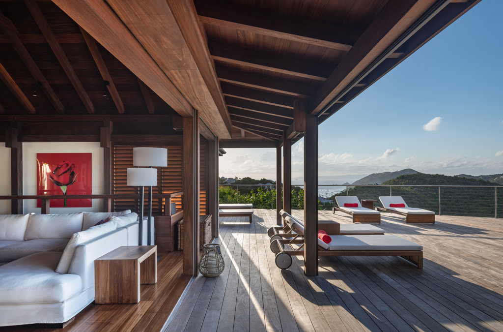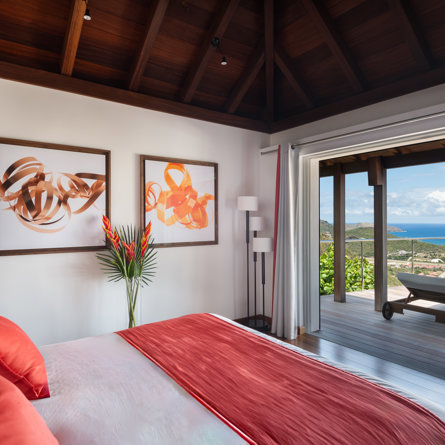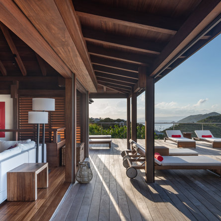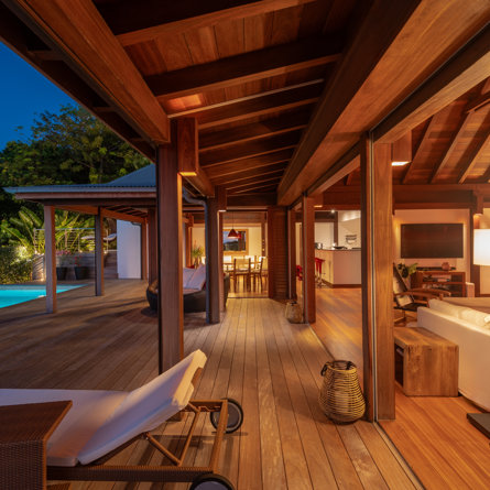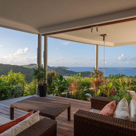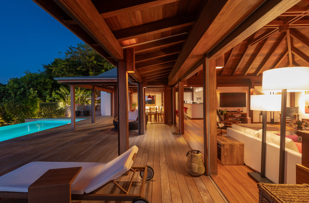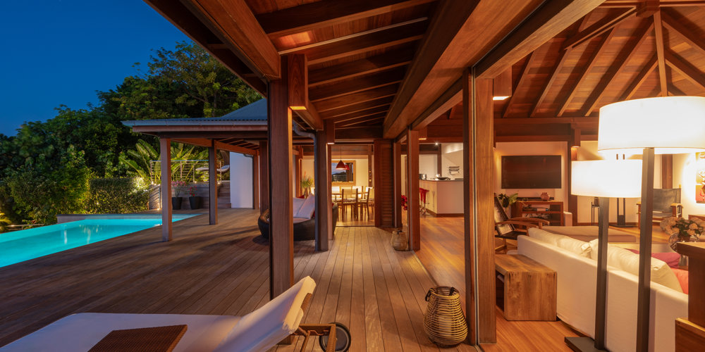 Avec une dominante de bois, la décoration de la villa Kyr s’inspire du style indonésien et abrite quatre chambres de taille égale pour accueillir famille ou amis qui viendront apprécier en toute convivialité cette propriété entièrement ouverte sur la baie de St Jean et située à 5 minutes de Gustavia.