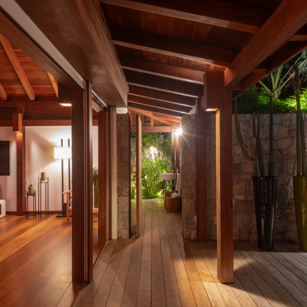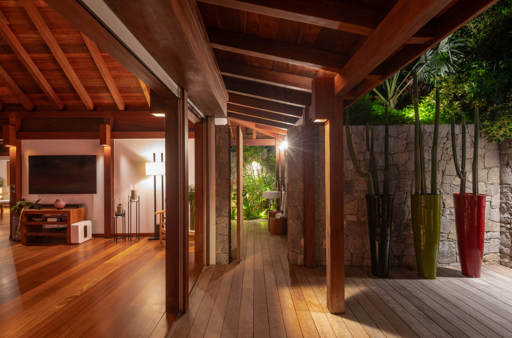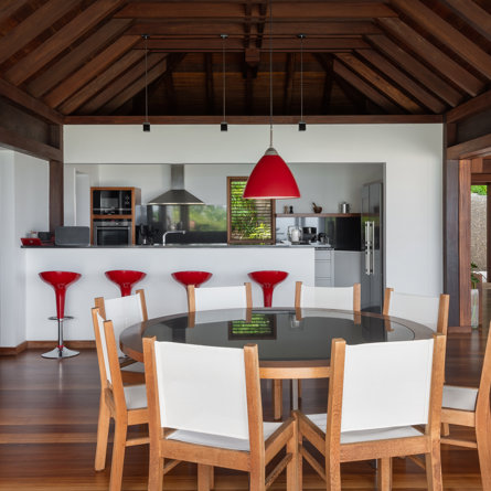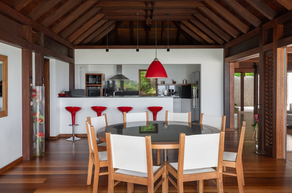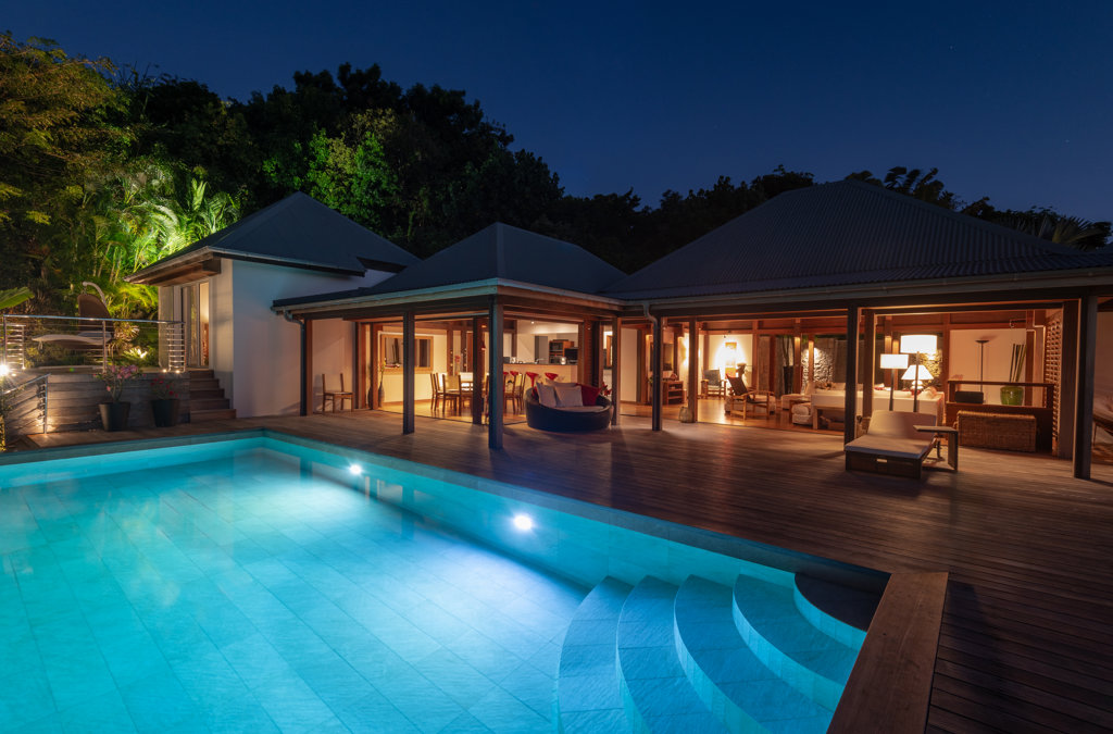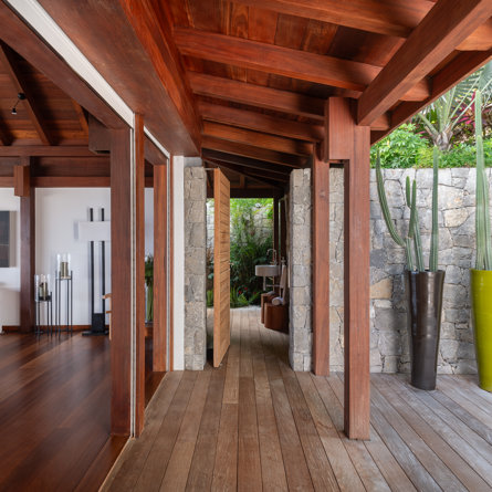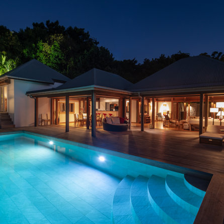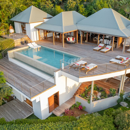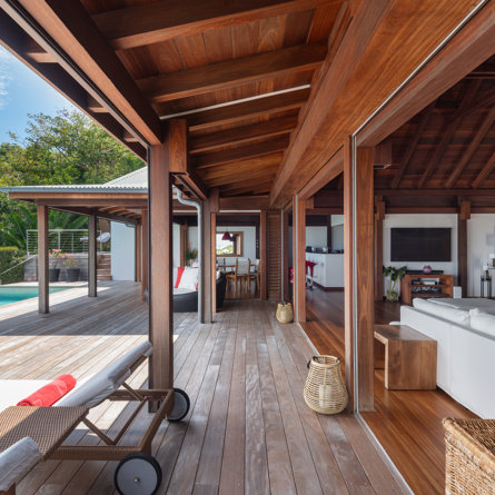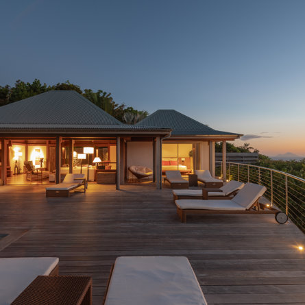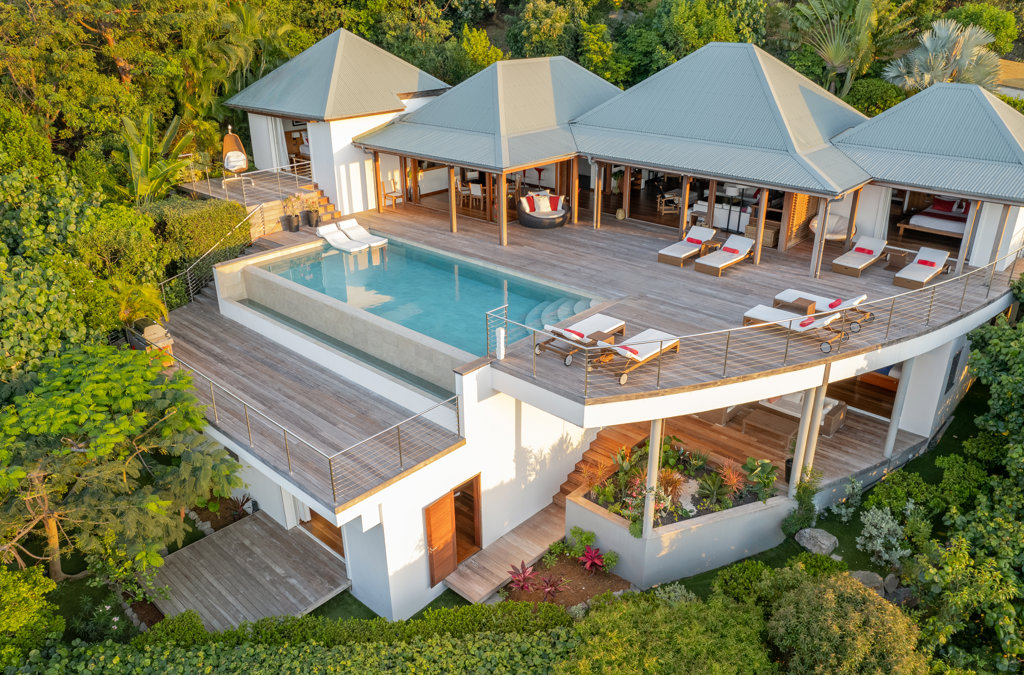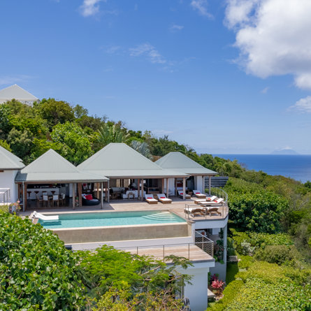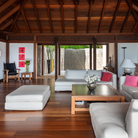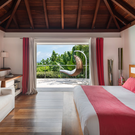 Avec une dominante de bois, la décoration de la villa Kyr s’inspire du style indonésien et abrite quatre chambres de taille égale pour accueillir famille ou amis qui viendront apprécier en toute convivialité cette propriété entièrement ouverte sur la baie de St Jean et située à 5 minutes de Gustavia.