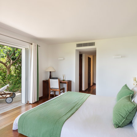 Vue mer, Terrasse privée, Air conditionné, Lit queen size, Dressing, Bureau, Smart TV, Système de son, Rideaux occultants, Coffre-fort.