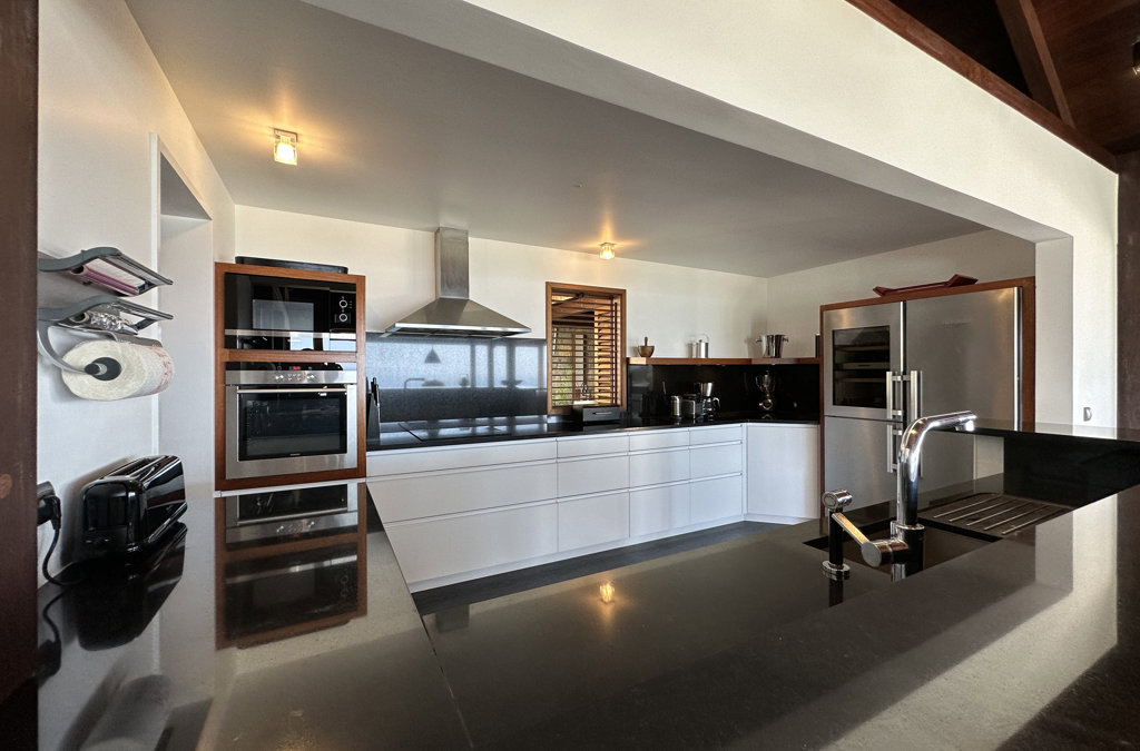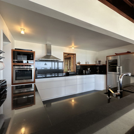Machine à café, Machine Nespresso, Mousseur à lait, Bouilloire, Réfrigérateur, Cave à vin, Plaques de cuisson, Four, Micro-ondes, Mixeur, Grille pain, Lave-vaisselle, Table à manger.