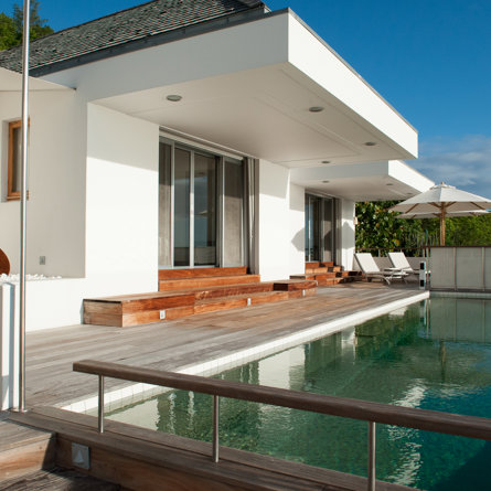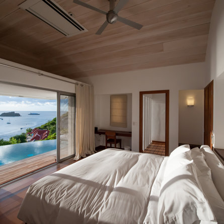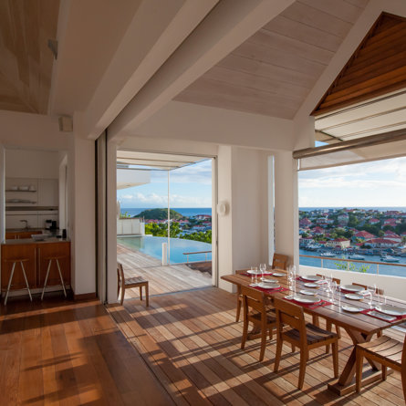 Implantée à Gustavia et jouissant d'une vue mer pittoresque, la Villa LAM est un havre de paix contemporain habillé de bois couleur sable et doté de trois chambres. Entièrement de plain-pied, cette spacieuse demeure comprend un séjour, une cuisine et une salle de remise en forme. À l’extérieur, la terrasse et la piscine offrent un panorama exceptionnel sur l’océan et le port de Gustavia.