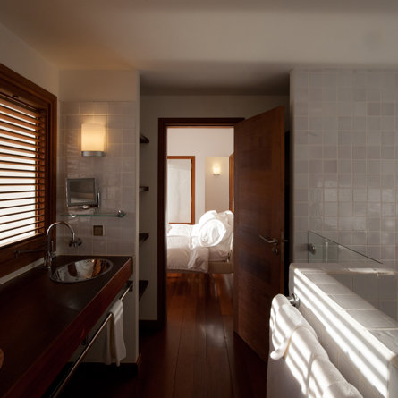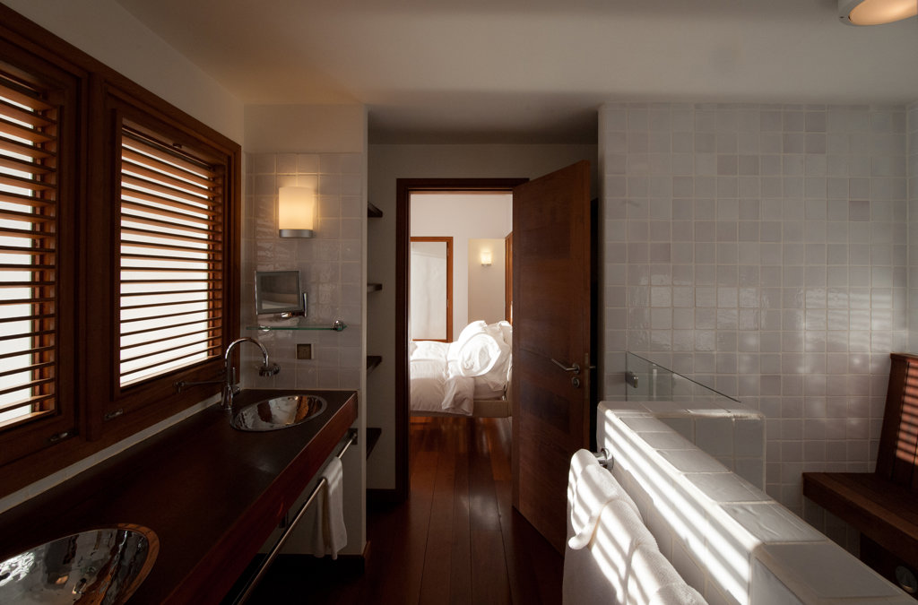 Salle de bain ouverte, Douche à l'italienne, Deux lavabos, Toilettes séparées.