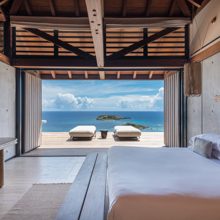Chambre 1 Vue mer, Terrasse, Air conditionné, Lit King size, Dressing, Bureau, Smart TV, Apple TV, Rideaux occultants, Coffre-fort.