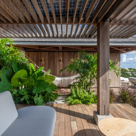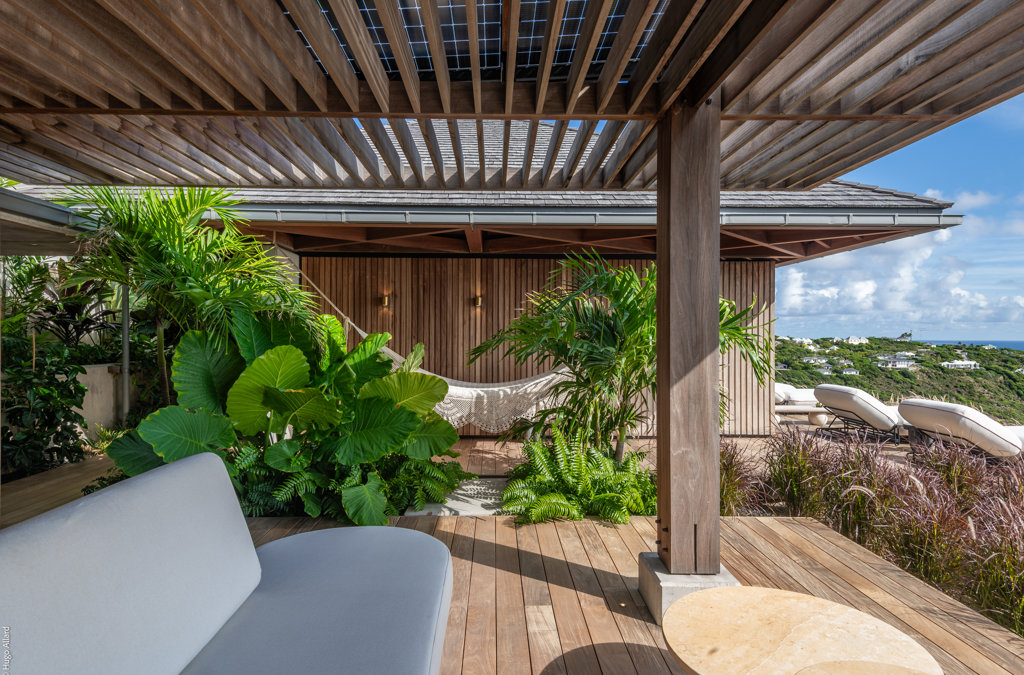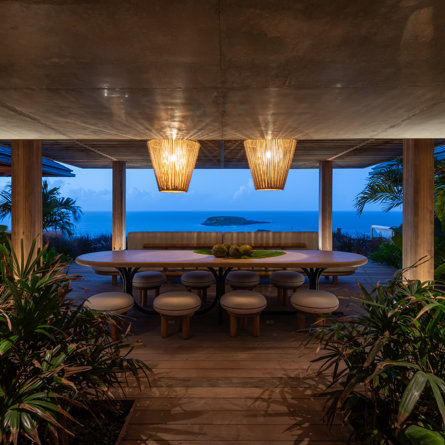 Espaces Extérieurs Vue mer, Terrasse, Table à manger, Piscine chauffée, Douche, Bains de soleil, Salon de jardin, Hamac, Système de son, Barbecue.