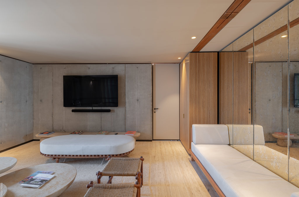 Salon Vue mer, Air Conditionné, Canapé, Table à manger, Smart TV, Apple TV, Système de son, Toilettes invités.