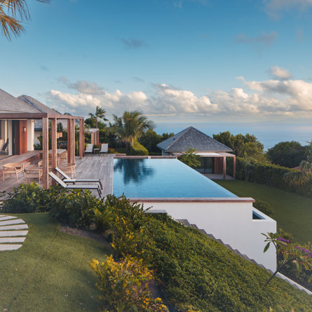 Surplombant l’éclat miroitant de la mer, la Villa Natacha est une demeure spacieuse abritant cinq chambres de même standing, toutes dotées d’une salle de bain et de leur terrasse privative. Idéale pour des séjours en famille, elle dispose d’une cuisine climatisée dans un pavillon indépendant, ainsi que d’une salle de sport et d’un espace de massage attenants à une vaste aire de jeux, afin que chacun profite pleinement du séjour. Au bord de la piscine, laissez-vous porter par la douceur du moment : panoramas à couper le souffle, parfaite tranquillité pour un séjour inoubliable.
