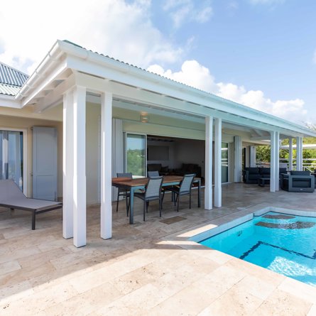 De plain-pied, surplombant le panorama époustouflant de Mont-Jean, la Villa Polo propose un cadre spacieux et intimiste pour une escapade confortable en famille. Cette propriété se distingue par ses intérieurs rénovés au style chic et rustique des Caraïbes. Ses extérieurs, quant à eux, proposent une terrasse ouverte sur la piscine, un espace repas couvert et un jardin, sublimés par la fraîcheur de la brise océanique.