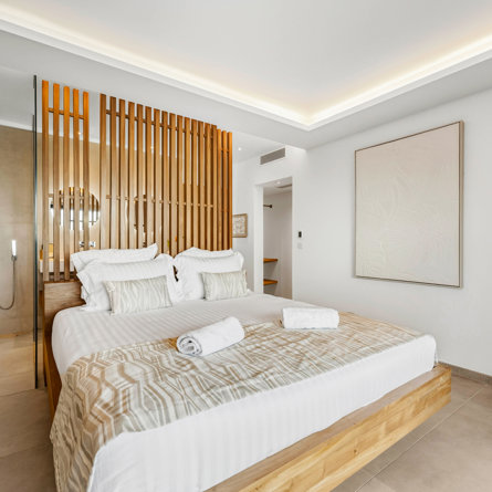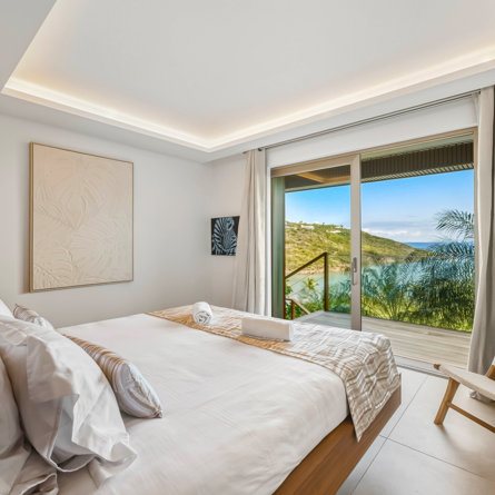 Vue mer, Terrasse, Air conditionné, Ventilateur, Lit king size, Armoire, Bureau, Smart TV, Rideaux occultants, Coffre-fort.