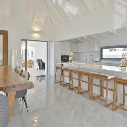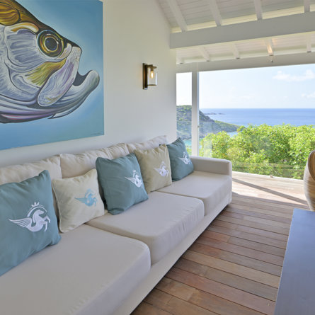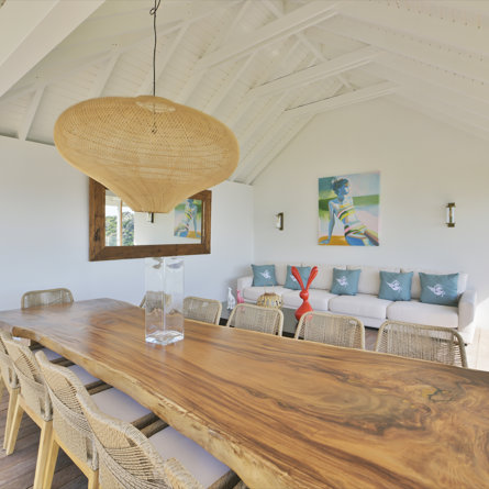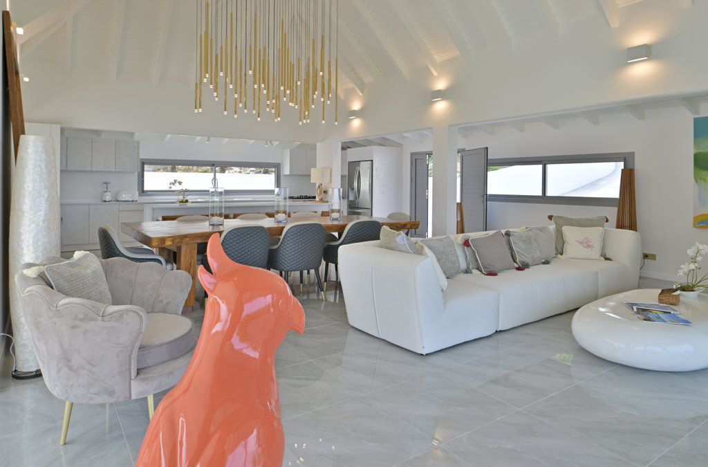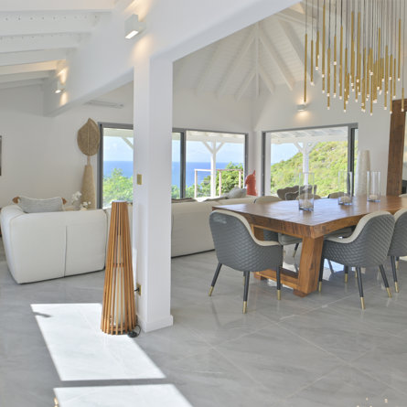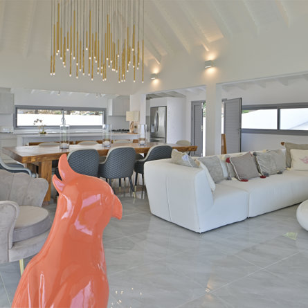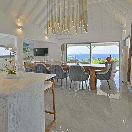 Perchée sur une colline et bordée d'une végétation tropicale luxuriante, la Villa Secret Garden, est un havre de paix surplombant la plage de Gouverneur et la mer étincelante. De plain-pied, cette moderne demeure offre de vastes espaces, joliment aménagés et décorés de nombreuses œuvres d'art.