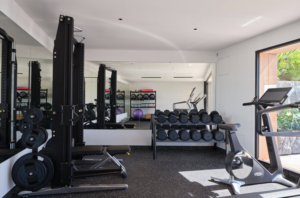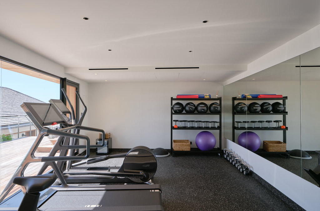 Air conditionné, Réfrigérateur, Tapis de course, Vélo elliptique, Vélo d'intérieur, Kettlebell, Poids, Elastiques de Pilates.