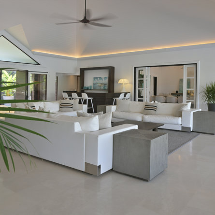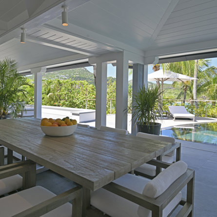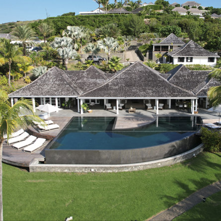 Au sein du Domaine du Levant et décorée de bois exotiques, la villa Silver Rainbow dispose d’un grand jardin bordé de palmiers, d’un accès direct à la plage de Petit Cul de Sac, d’une grande terrasse avec une piscine tout en courbes, de trois grandes chambres et trois plus petites réparties dans la maison principale et au sein de bungalows individuels pouvant loger 12 personnes, pour une intimité absolue.