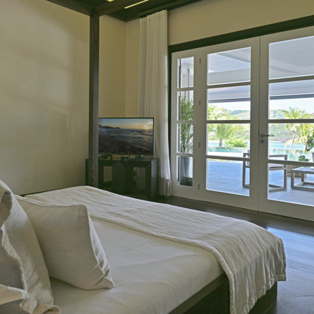 Vue mer & jardin, Terrasse, Air conditionné, Ventilateur, Lit queen size, Dressing, Armoire, Smart TV, Apple TV, Rideaux occultants, Coffre-fort.
