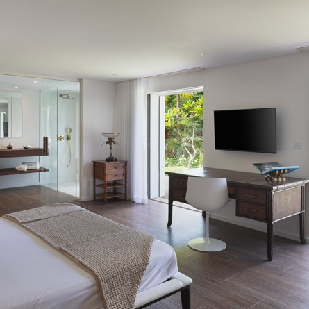 Vue jardin, Terrasse, Terrasse privée, Air conditionné, Lit Queen size, Dressing, Bureau, Smart TV, Dish, Netflix, Rideaux occultants, Coffre-fort.