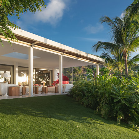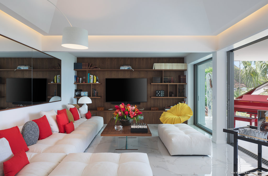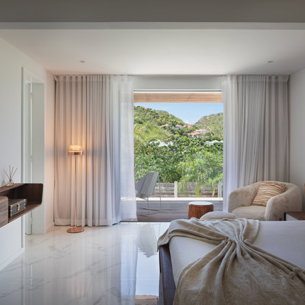 Nichée au cœur de jardins tropicaux luxuriants avec une vue imprenable sur la baie de Lorient, la Villa Stellae combine style contemporain et charme insulaire. S’étendant sur plusieurs niveaux, cette vaste propriété de six chambres offre un salon et une cuisine généreusement dimensionnés. À l’extérieur, une terrasse, une piscine chauffée et un terrain de pétanque complètent cet espace idyllique, idéalement situé à quelques pas de la plage de Lorient.