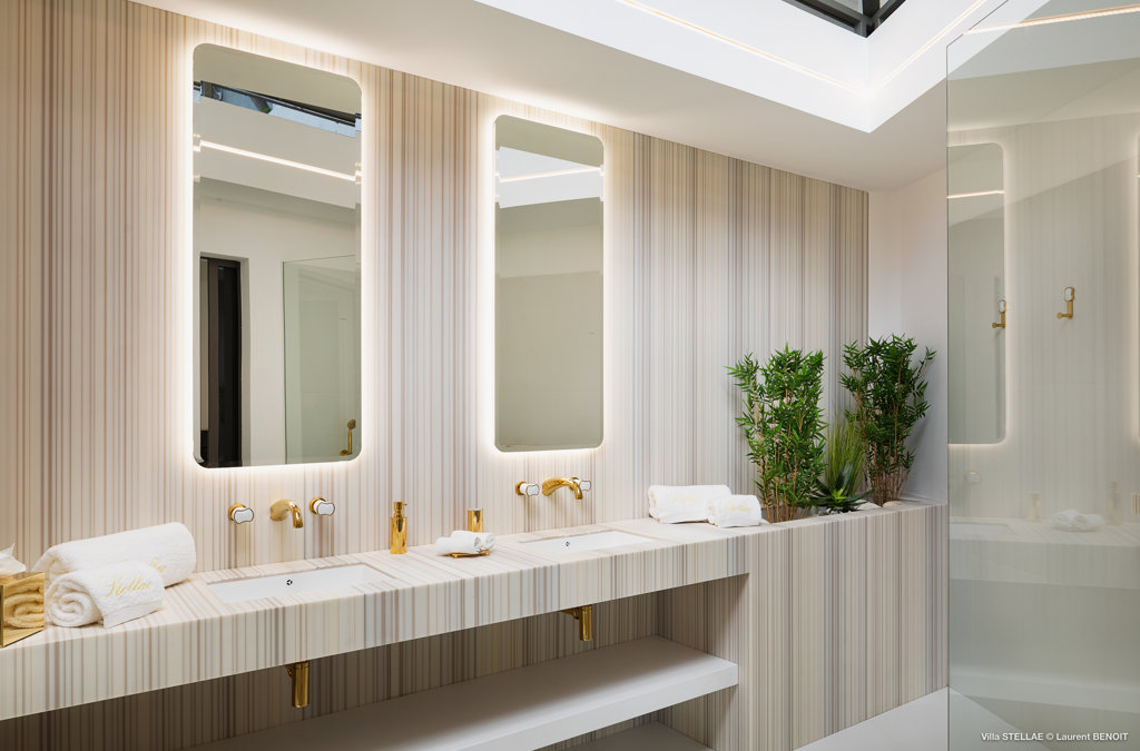 Salle de bain attenante, Douche à l'italienne, Double vasque, Sèche-cheveux, Toilettes séparées.