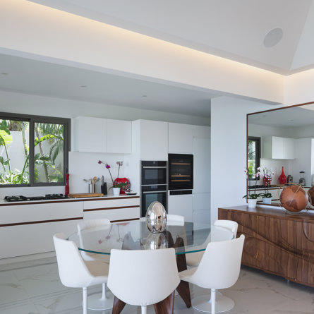 Air conditionné, Machine à café, Machine Nespresso, Bouilloire, Réfrigérateur, Cave à vin, Cuisinière électrique, Plaques de cuisson, Four, Micro-ondes, Mixeur, Grille pain, Lave-vaisselle, Table à manger.
