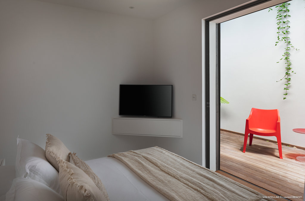 Vue jardin, Terrasse privée, Air conditionné, Lit Queen size, Dressing, Bureau, Smart TV, Dish, Netflix, Rideaux occultants, Coffre-fort.