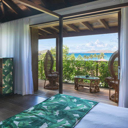 Vue mer, Terrasse privée, Air conditionné, Lit Queen size, Armoire, Coiffeuse, Smart TV, Dish, Netflix, Rideaux occultants, Coffre-fort.