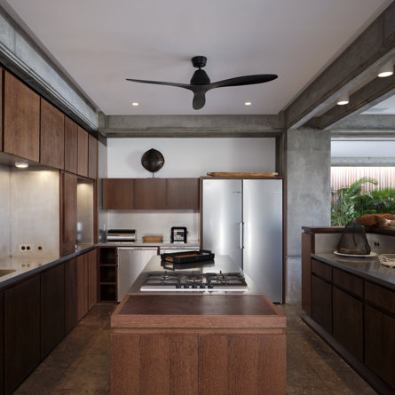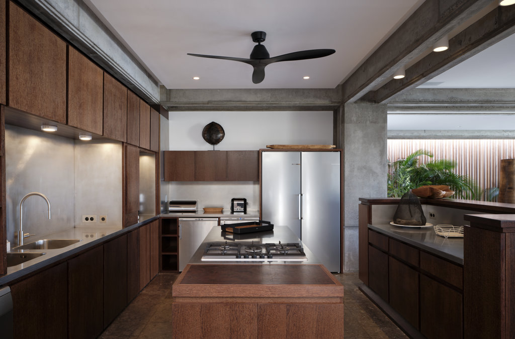 Machine à café, Bouilloire, Réfrigérateur, Machine à glaçons, Cuisinière à gaz, Four, Micro-ondes, Mixeur, Presse agrumes, Grille pain, Lave-vaisselle.