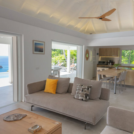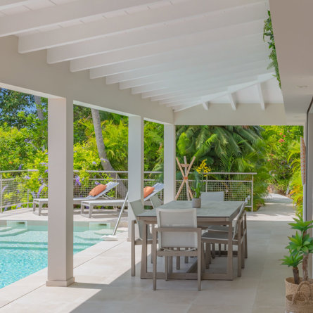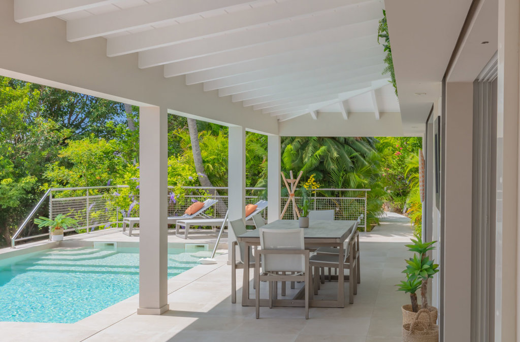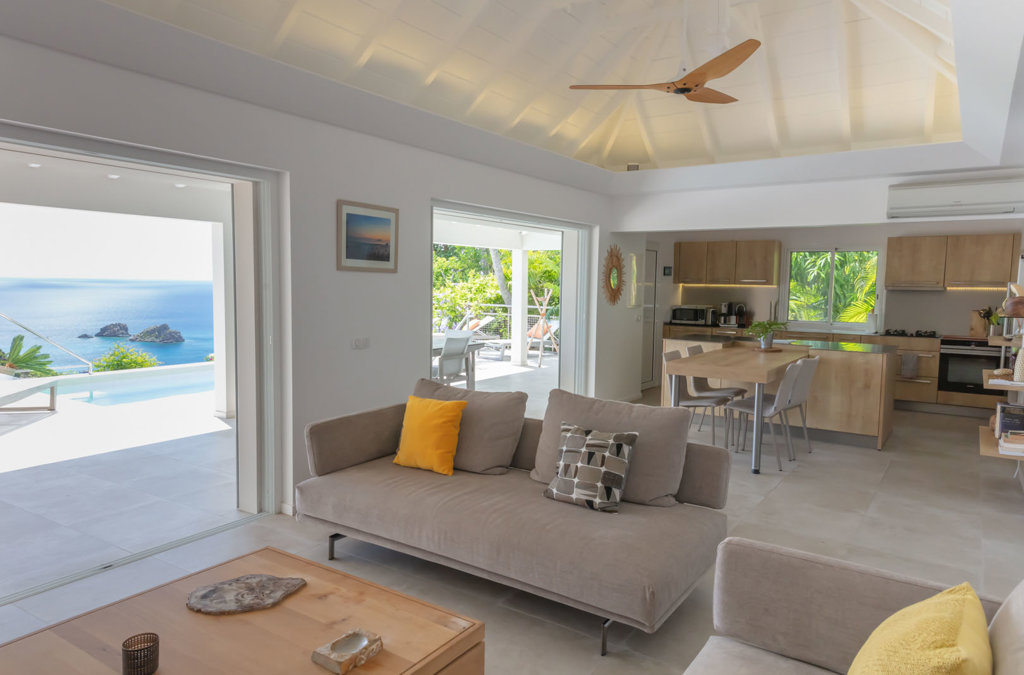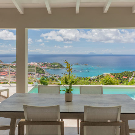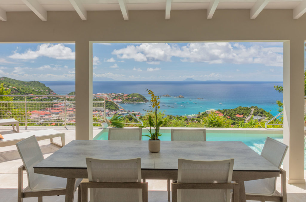 Abritant un jardin verdoyant offrant une totale intimité, la lumineuse villa Wish avec vue sur le port de Gustavia, se compose de chambres à la superficie équivalente et une piscine à débordement d’où vous pourrez admirer de magnifiques couchers de soleil.