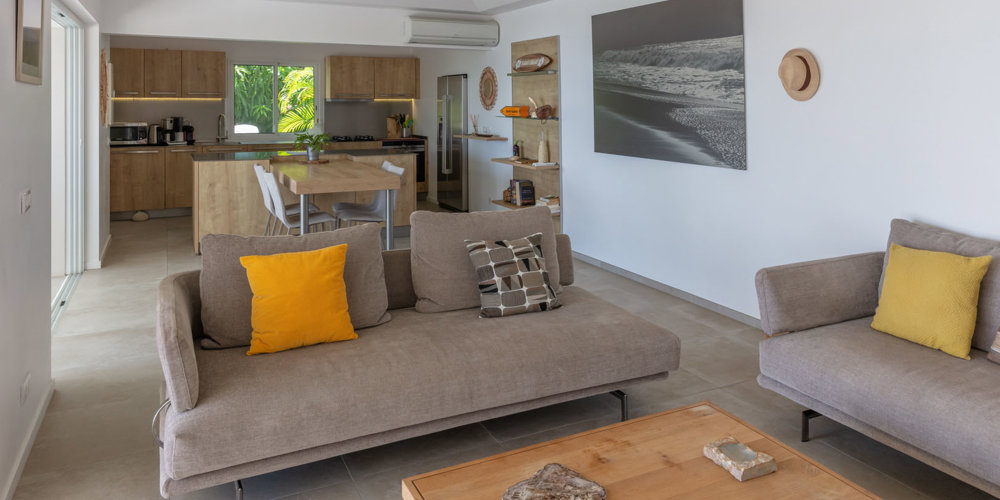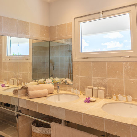 - Petit-déjeuner continental livré chaque jour en villa (assortiment de viennoiseries & pain frais, jus de fruits frais)
