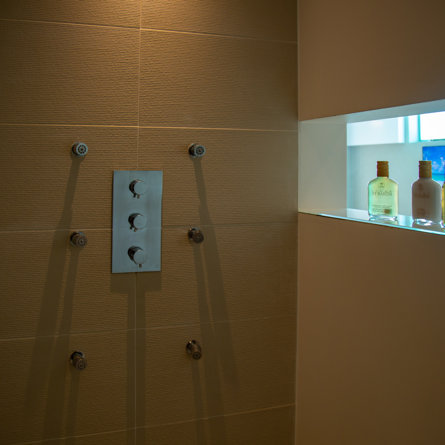 Salle de bain partagée, Douche à l'italienne, Deux lavabos, Toilettes.
