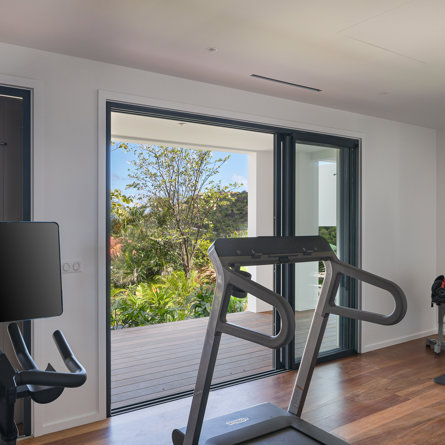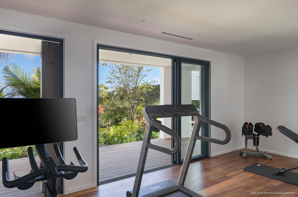 Air conditionné, TV, Tapis de course, Vélo d'intérieur, Poids, Tapis de Yoga.