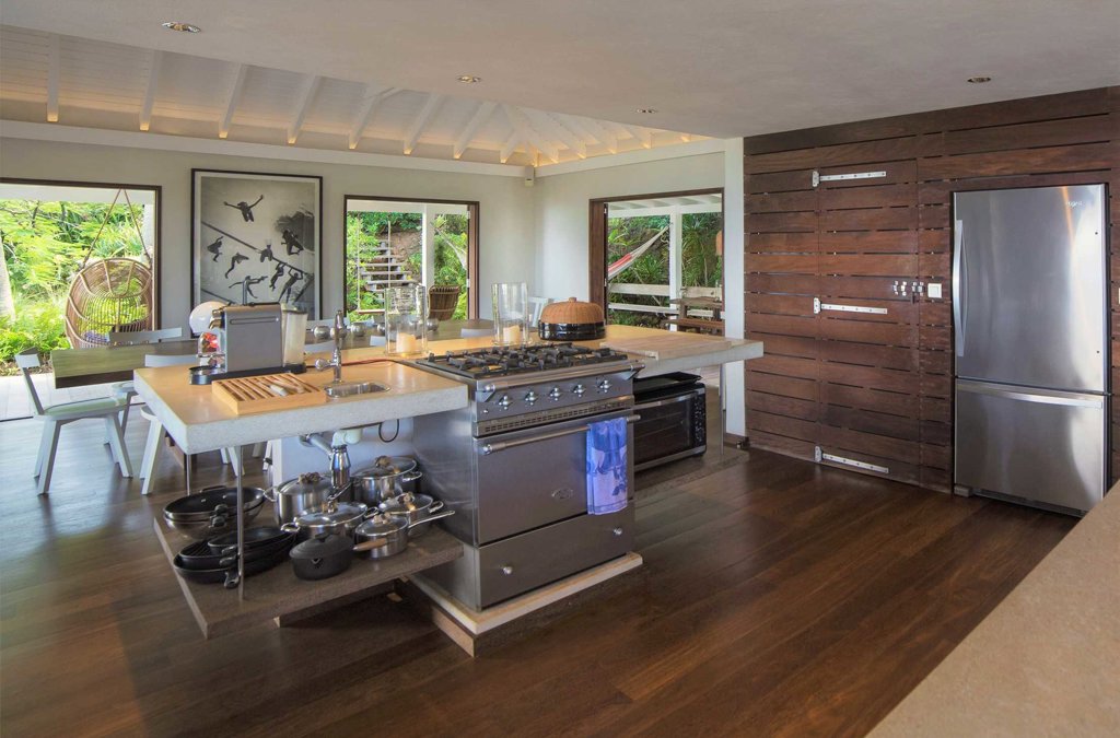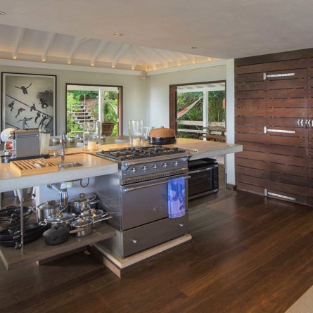 Cuisine équipée, deux lave-vaisselles, mixeur, cafetière, machine à glaçons, micro-ondes, machine Nespresso, grille-pain, barbecue.