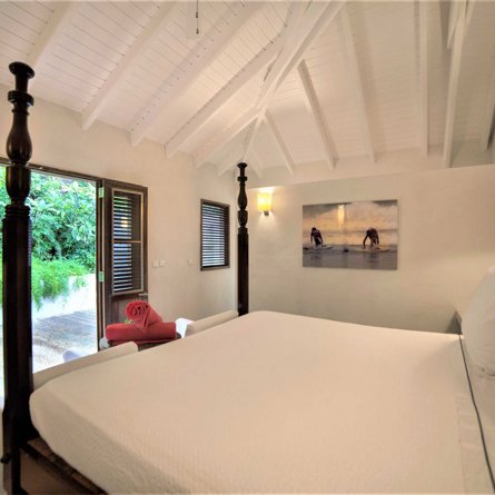 Lit King size, air conditionné, ventilateur, Wi-Fi, salle de bain attenante, douche intérieure et extérieure, vue jardin.