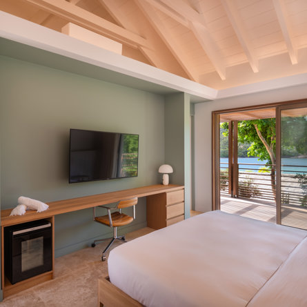 Vue mer & jardin, Terrasse, Air conditionné, Lit queen size, Armoire, Bureau, Smart TV, Rideaux occultants, Coffre-fort.