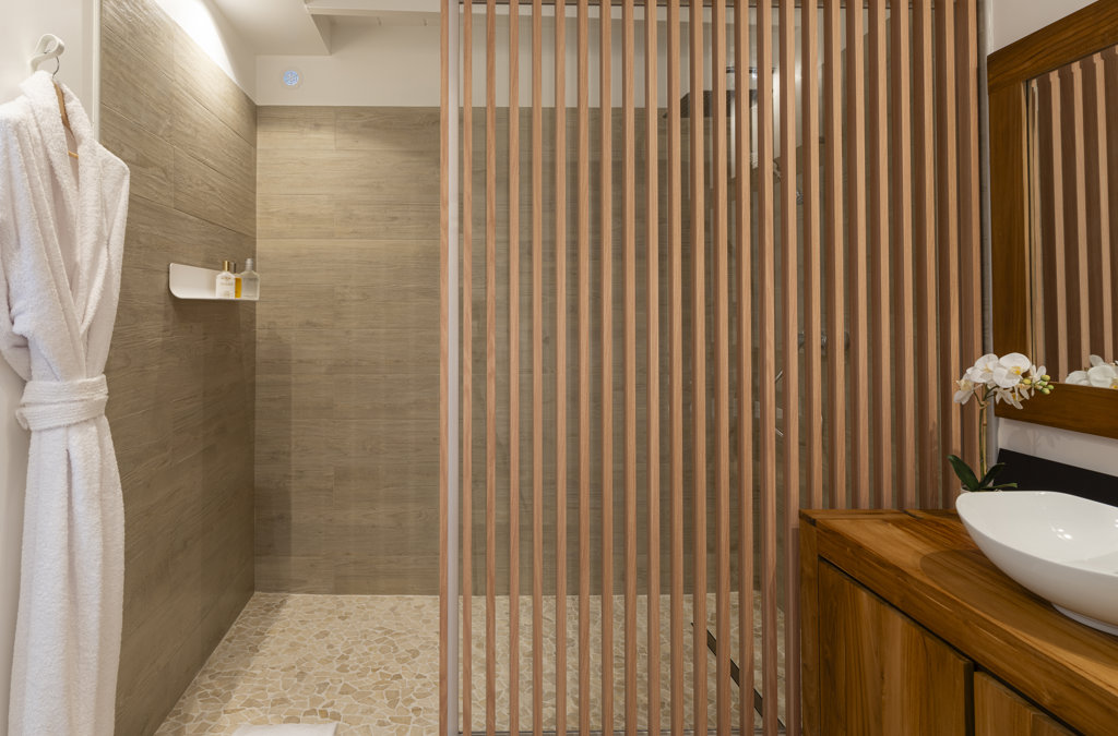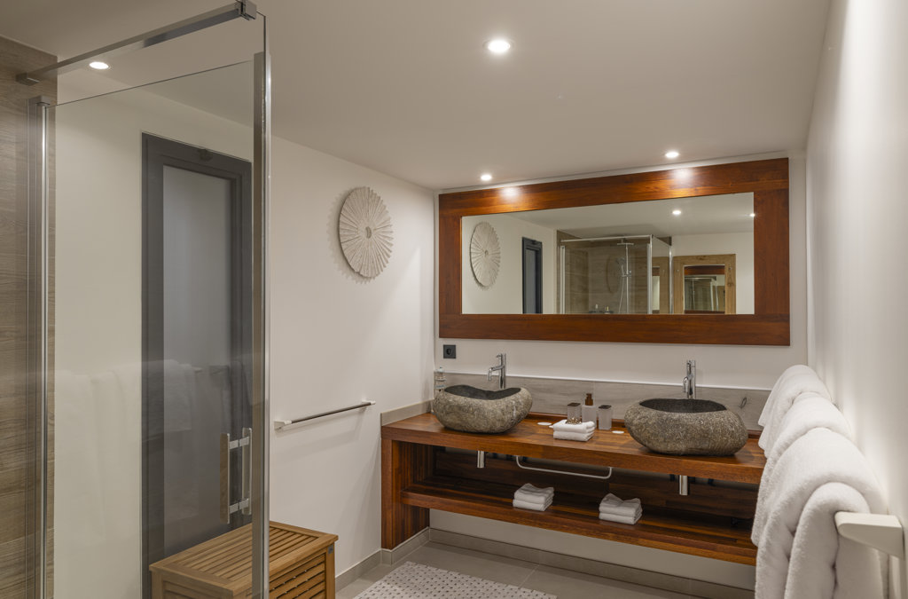 Salle de bain attenante, Douche, Deux lavabos, Sèche-cheveux, Toilettes séparées.
