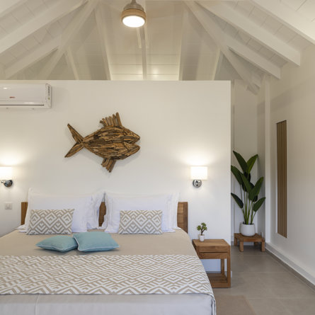 Vue mer, Terrasse privée, Air conditionné, Ventilateur, Lit king size, Armoire, Bureau, Smart TV, Rideaux occultants, Coffre-fort.