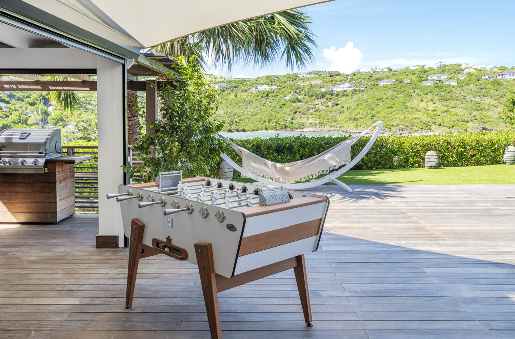 Vue mer, Jardin, Terrasse, Table à manger, Piscine chauffée, Bains de soleil, Parasols, Salon de jardin, Hamac, Système de son, Table de ping-pong, Babyfoot, Barbecue.