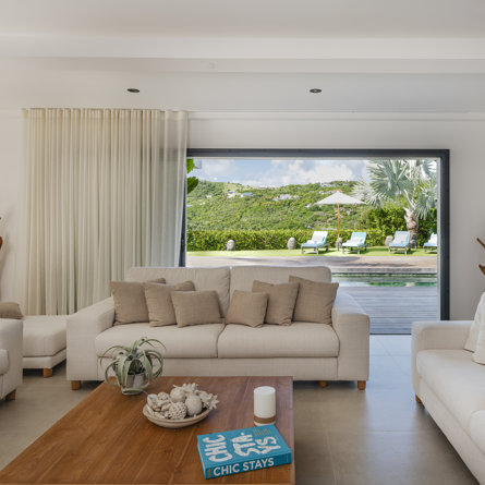 Surplombant la plage de Marigot, à quelques minutes de marche de la baie du même nom, la Villa Mathilda est l'incarnation même du luxe discret, avec un design à la fois simple et moderne. Dotée de cinq chambres, dont deux communiquent par une salle de bain partagée, cette propriété s'étend sur plusieurs niveaux et dispose d’une cuisine ouverte, d’un salon climatisé et d’une salle de fitness (idéale pour maintenir votre routine). À l'extérieur, rafraîchissez-vous dans la piscine ou profitez d’une partie de ping-pong tout en admirant les vues imprenables sur l’océan.