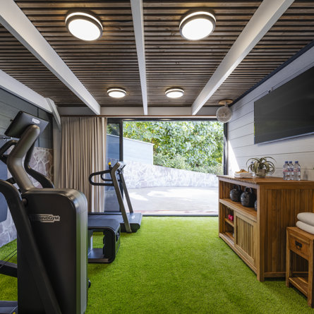 Air conditionné, Ventilateur, TV, Tapis de course, Vélo elliptique, Banc de musculation, Kettlebell, Tapis de Yoga.