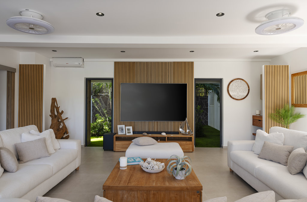 Vue piscine, Air conditionné, Ventilateur, Canapé, Smart TV, Système de son, Fibre.