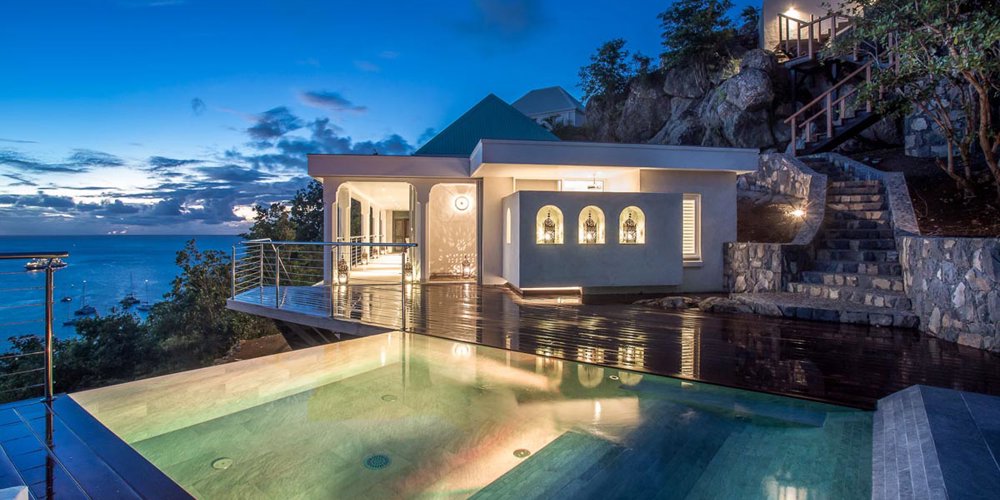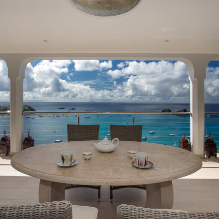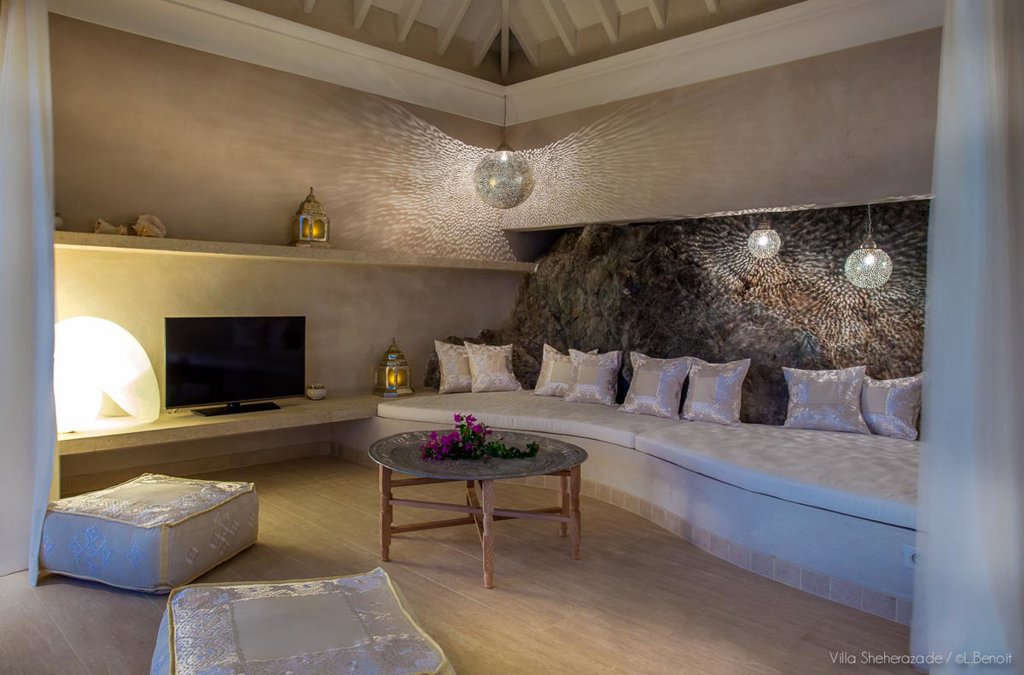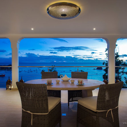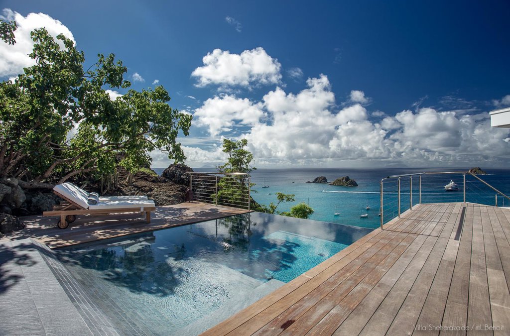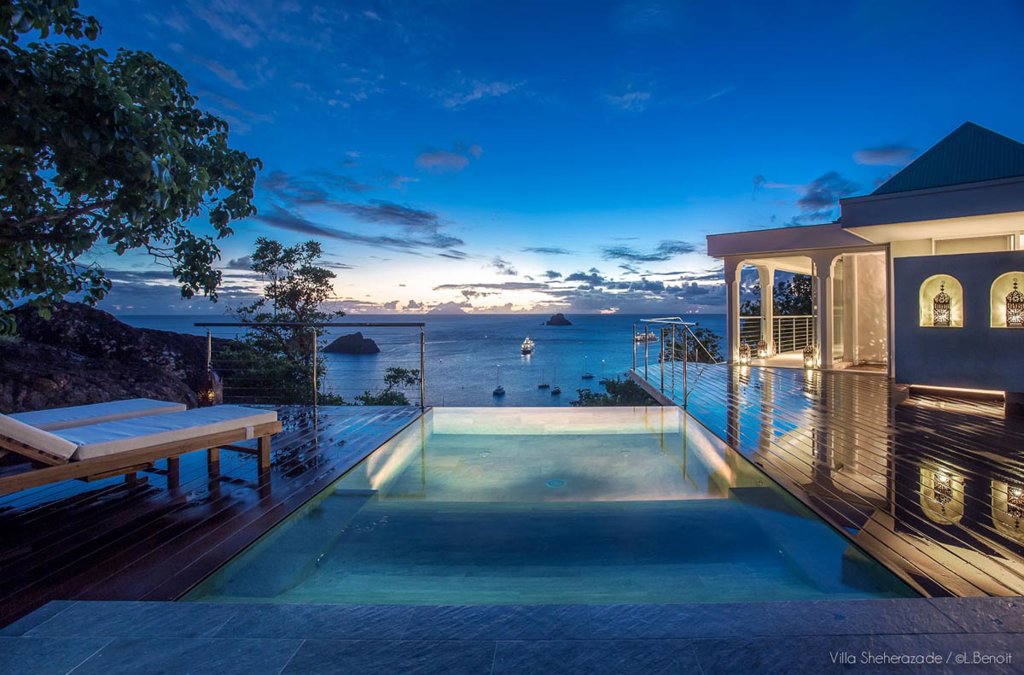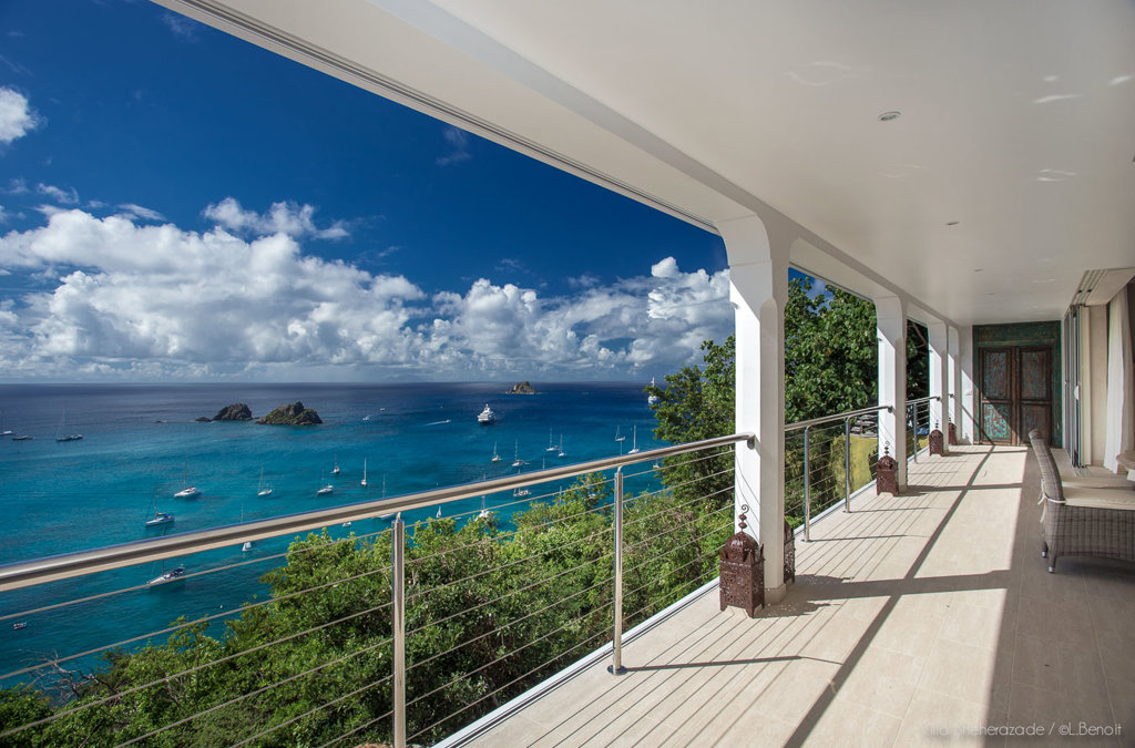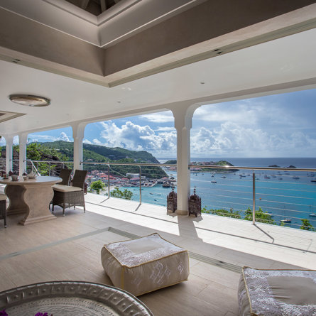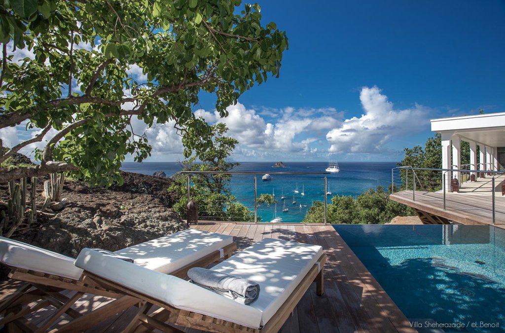 Dans la villa Sheherazade dont l’accès se fait par des escaliers, le dépaysement est garanti : une ambiance orientale où toutes les pièces sont ouvertes sur l’extérieur et donnent sur Gustavia, permettant ainsi de profiter de sublimes couchers de soleil qui raviront forcément les jeunes couples en lune de miel.