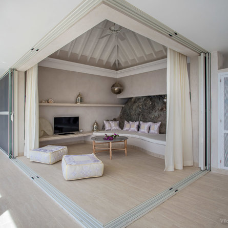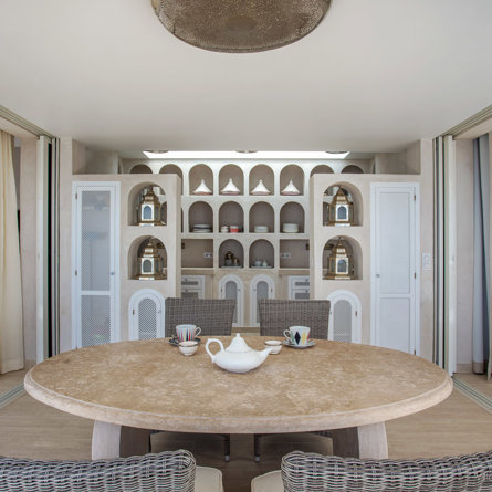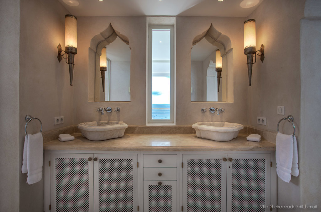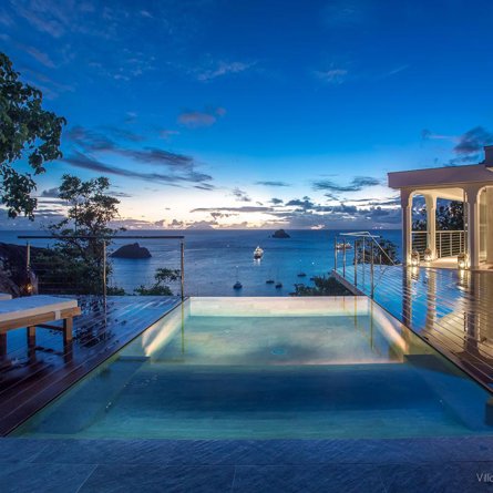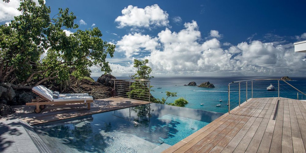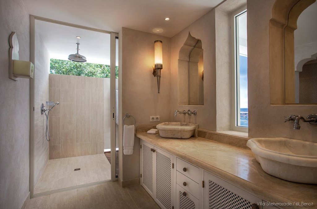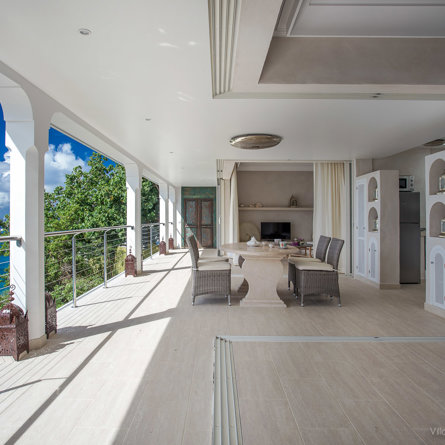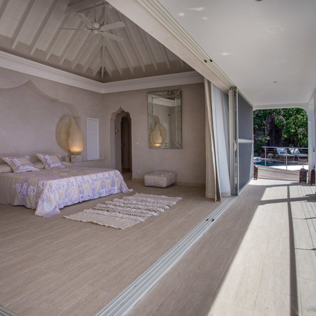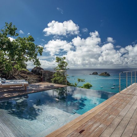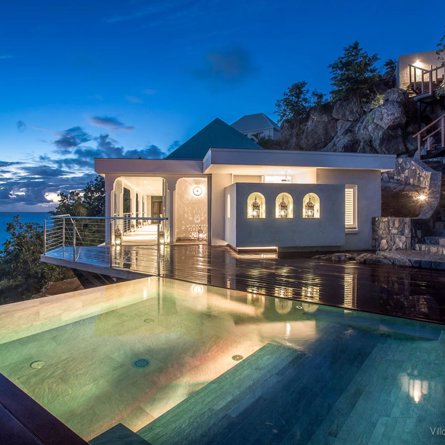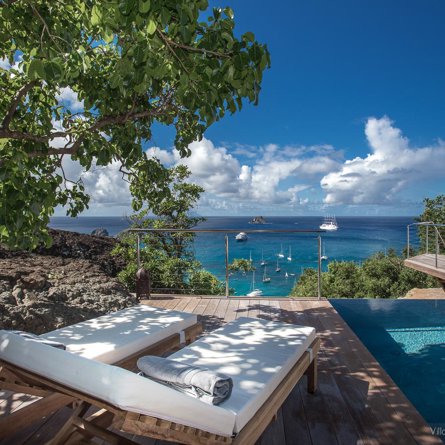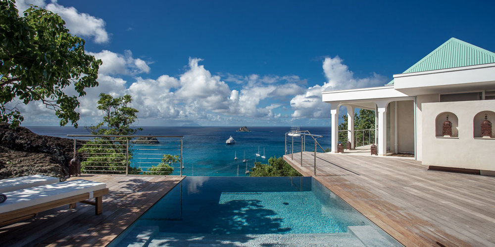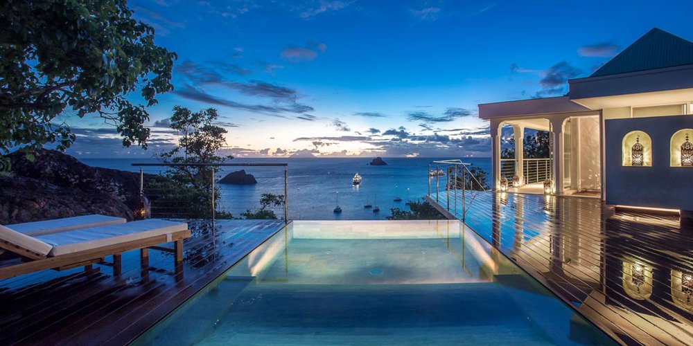 Dans la villa Sheherazade dont l’accès se fait par des escaliers, le dépaysement est garanti : une ambiance orientale où toutes les pièces sont ouvertes sur l’extérieur et donnent sur Gustavia, permettant ainsi de profiter de sublimes couchers de soleil qui raviront forcément les jeunes couples en lune de miel.