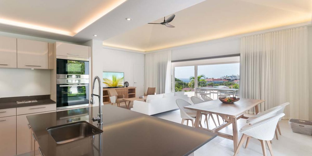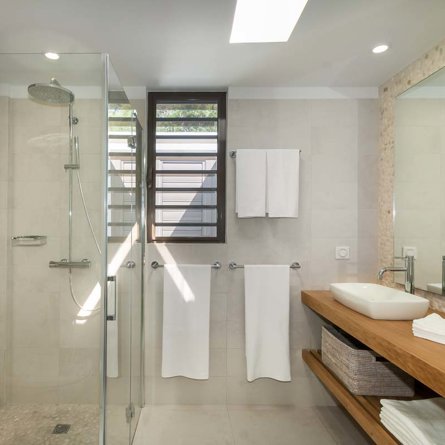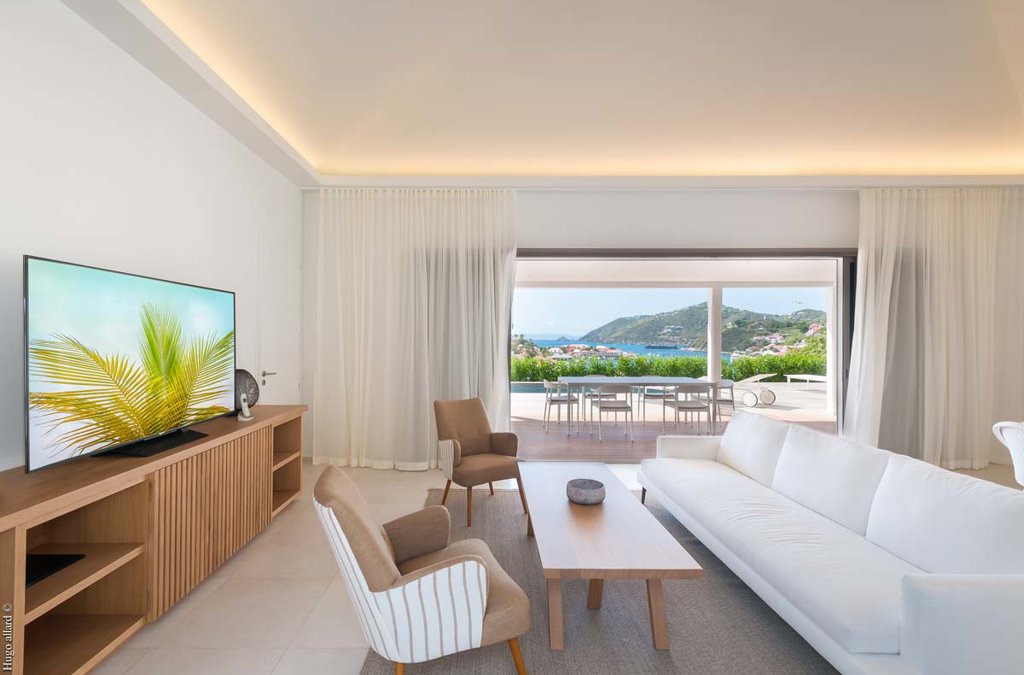 Depuis la villa Shell Beach, vous pourrez facilement accéder à pied à la plage et à Gustavia mais aussi profiter de ses nombreux atouts : une propriété lumineuse sur un niveau entièrement climatisée et tout équipée, une intimité totale avec des chambres séparées idéales pour deux couples ou une famille avec adolescents, mais aussi le soleil qui s’invite jusque tard dans l’après-midi.