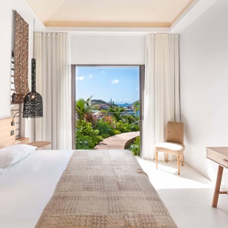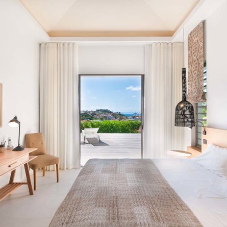 Vue mer & jardin, Terrasse, Air conditionné, Lit queen size, Armoire, Bureau, Rideaux occultants, Coffre-fort.