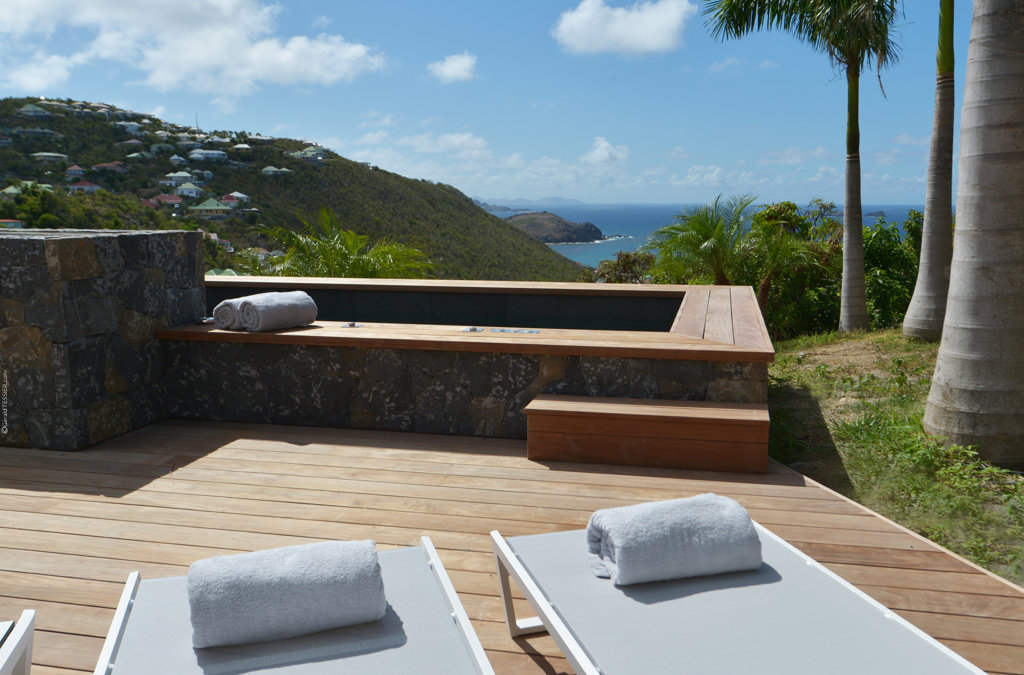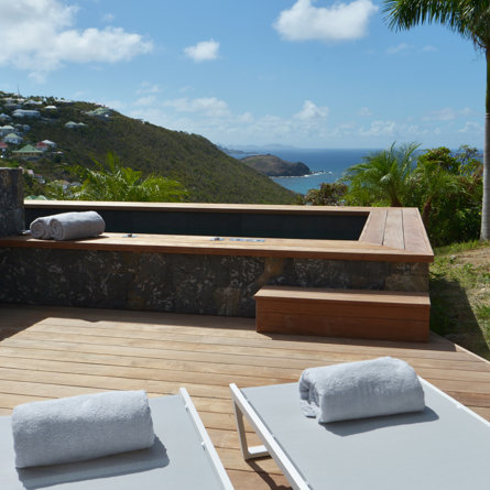 Très spacieuse et complètement ouverte sur l’extérieur, la villa The Source permet d’accueillir 12 personnes dans ses 6 chambres de taille équivalente et cache même un jacuzzi offrant une très belle vue sur la baie de Flamands.