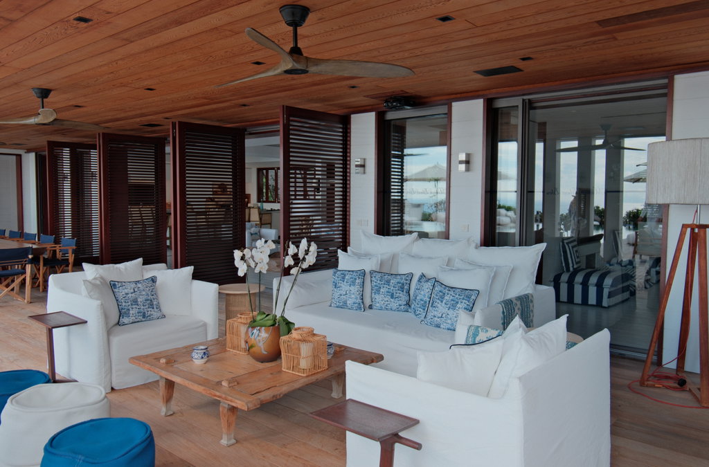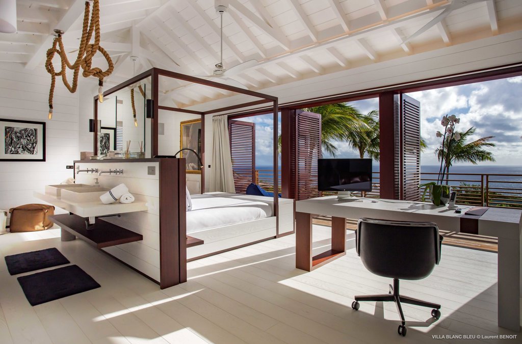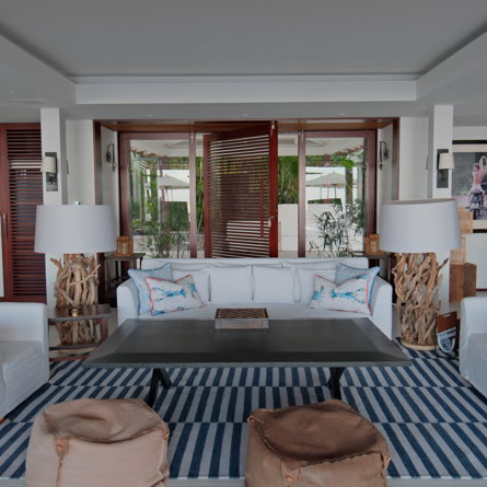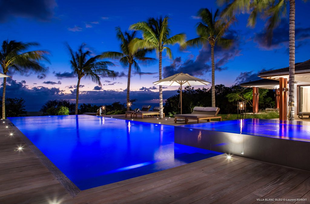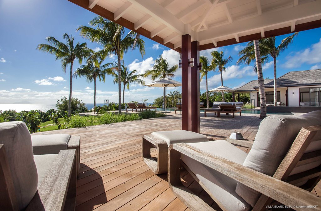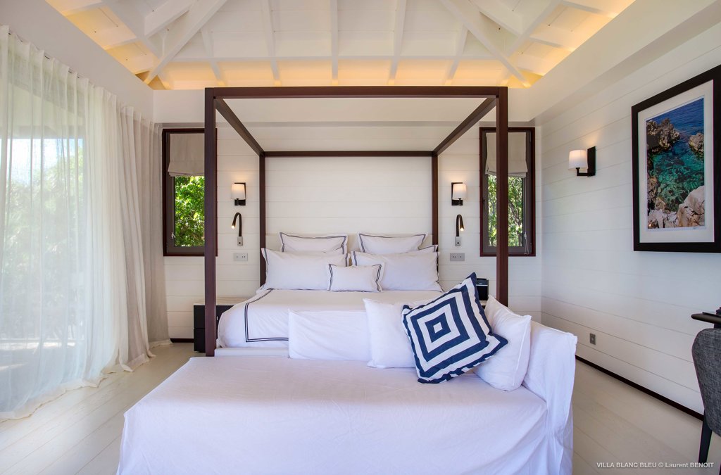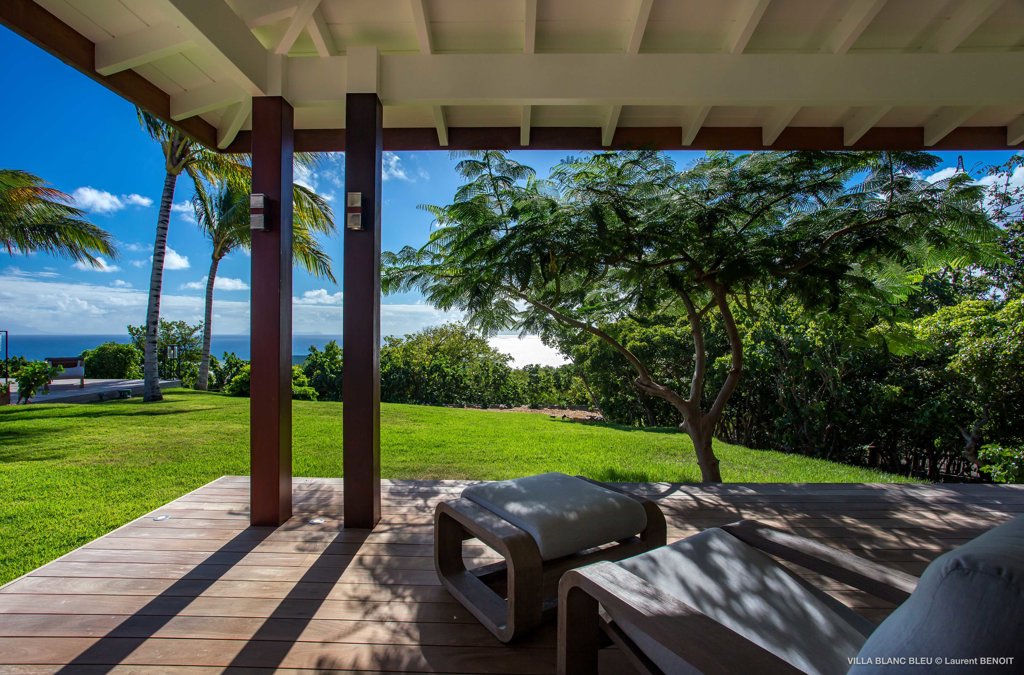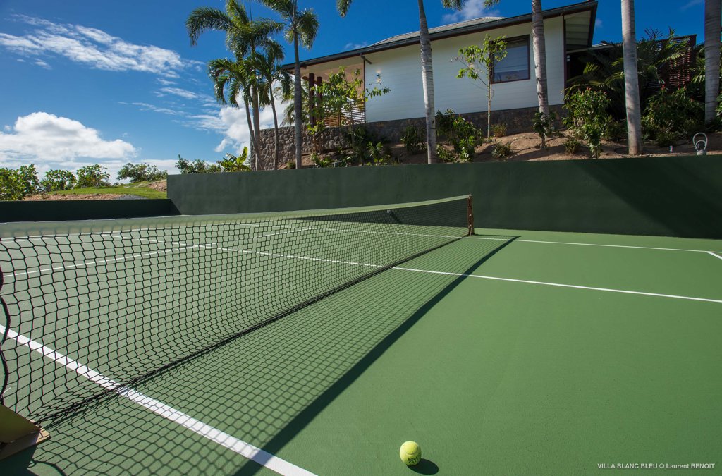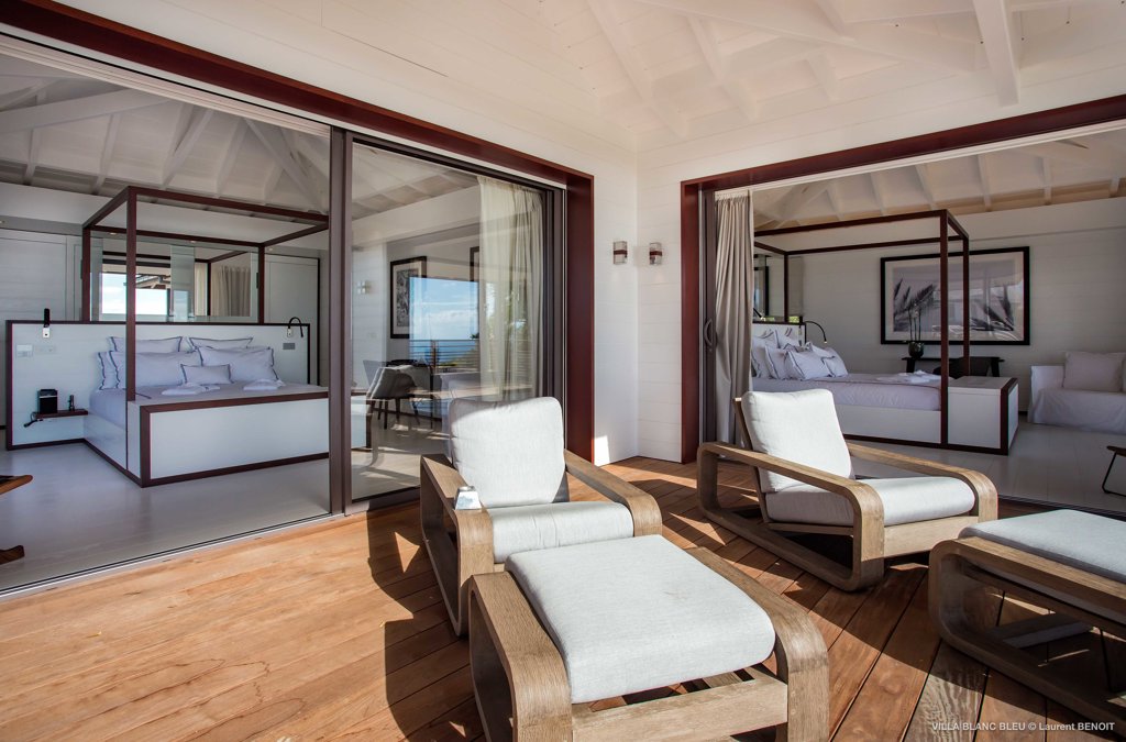 Dans la villa Blanc Bleu, le calme règne mais ce n’est pas sa seule qualité : un immense jardin accompagné d’un court de tennis padel, une décoration intérieure inspirée du style Hampton, des couleurs empruntées au bleu de la mer et au blanc du sable, une vue sur l’océan à perte de vue assurant une totale intimité ou encore le soleil jusqu’en fin de journée illuminant toute la propriété.